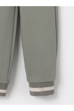 Трикотажные брюки для мальчика из мягкого петельчатого футера. В составе 80% натурального хлопка и 20% полиэстера, при этом полиэстер ввязан внутрь по особой технологии и не соприкасается с кожей. Эластичный пояс на резинке регулируется по ширине с помощью шнура. Изделие сохраняет цвет и форму после многократных стирок. Все трикотажные полотна производятся в соответствии с нормами швейцарского сертификата ЭкоТекс.