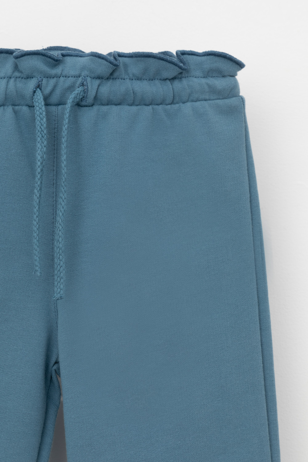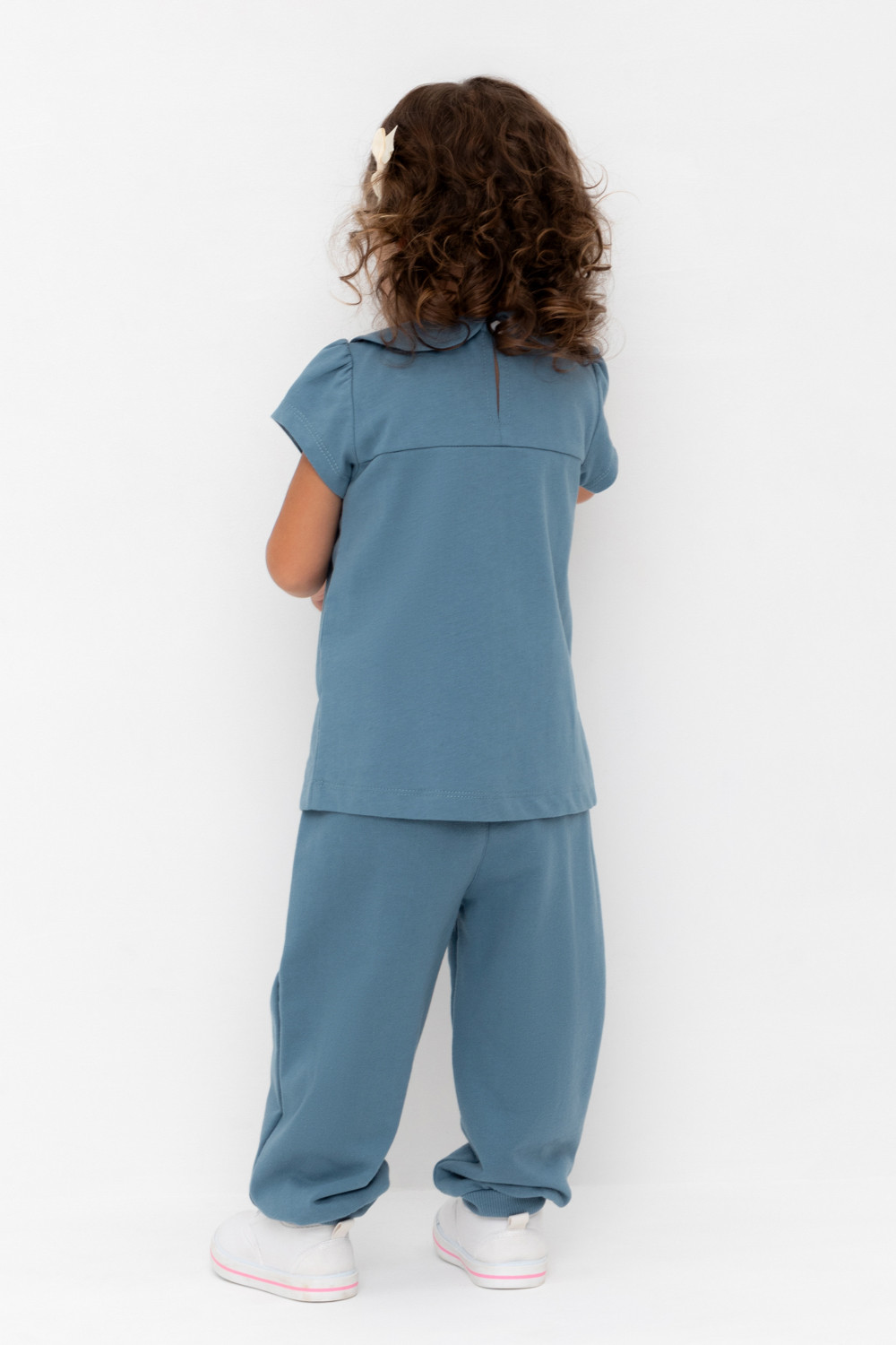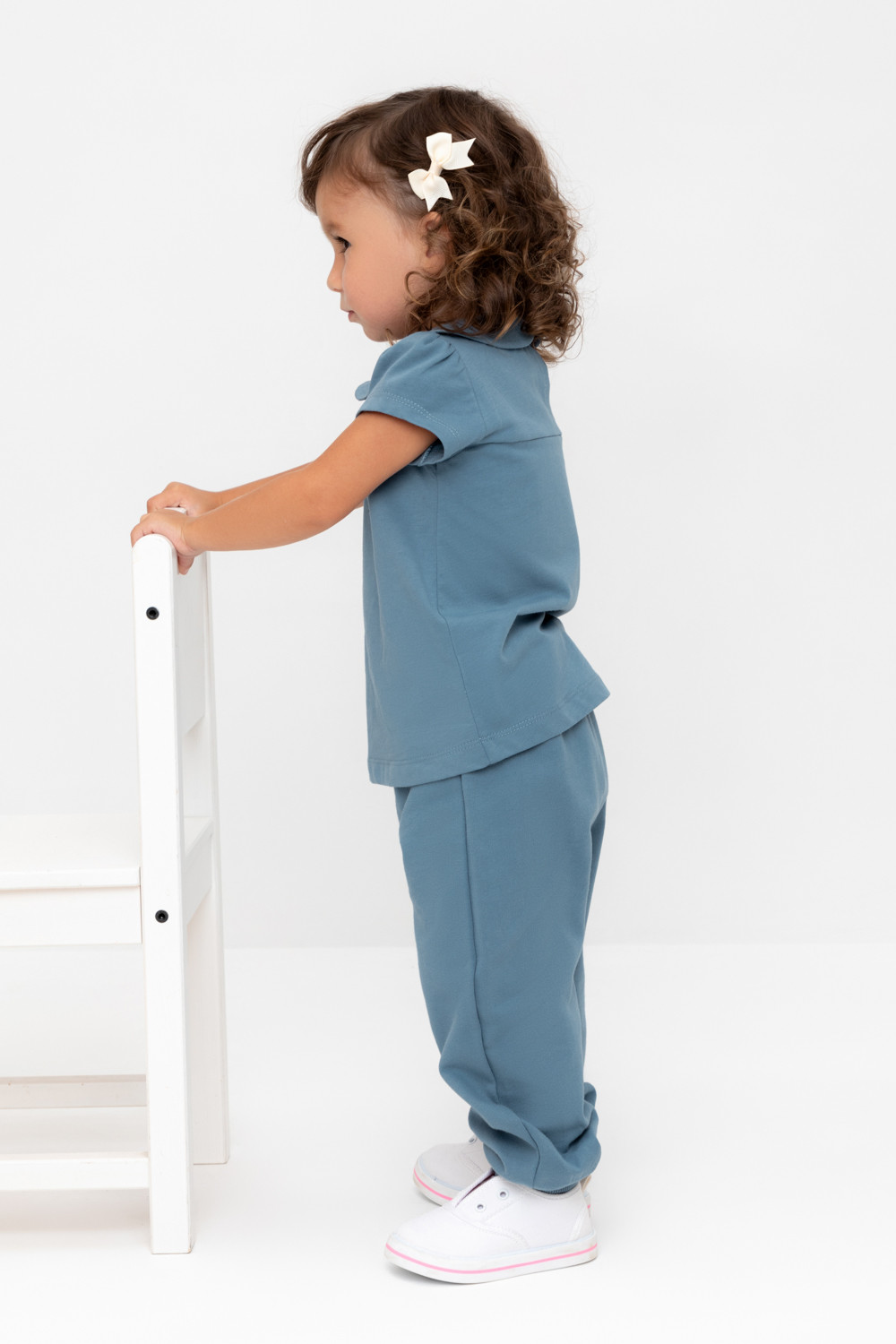 Брюки для девочки из мягкого петельчатого трикотажа. Эластичный пояс на резинке регулируется по ширине с помощью шнурка. Внизу эластичные манжеты.