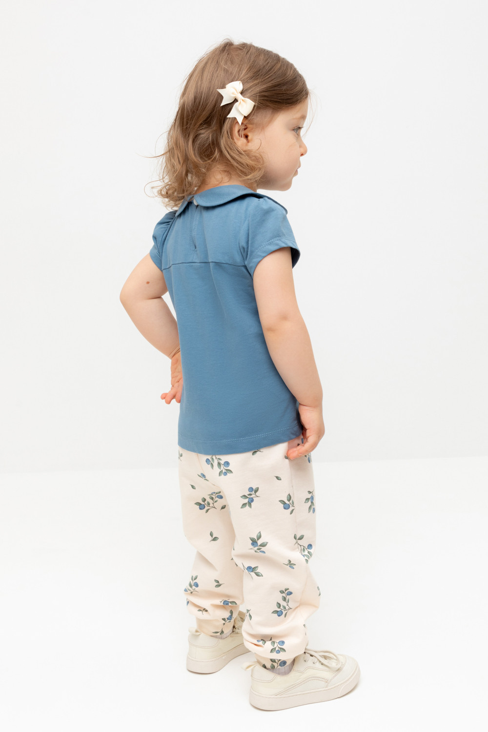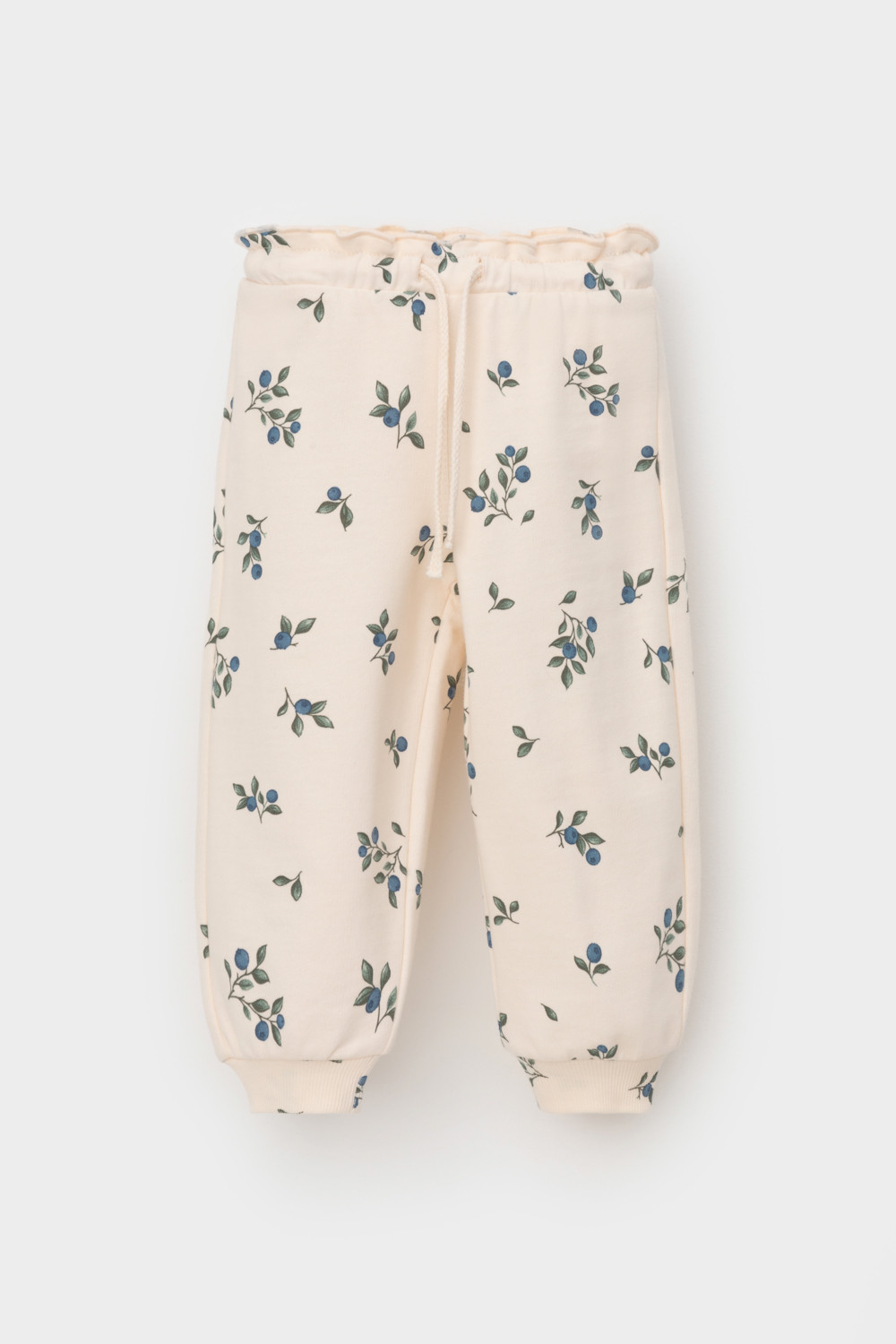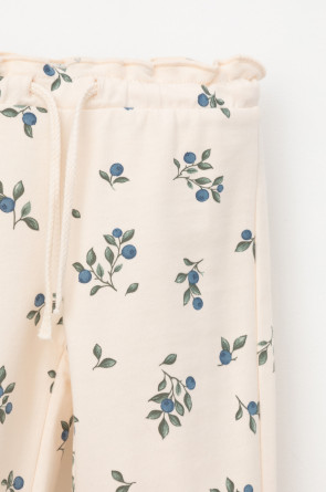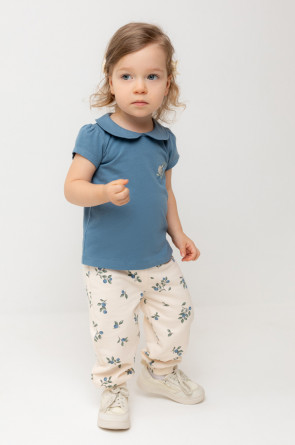 Брюки для девочки из мягкого петельчатого трикотажа. Эластичный пояс на резинке регулируется по ширине с помощью шнурка. Внизу эластичные манжеты.