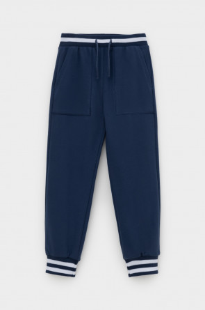 Брюки для мальчика из высококачественного трикотажного полотна. Пояс на резинке регулируется по ширине с помощью шнурка. По бокам два удобных кармана. Внизу эластичные манжеты.
