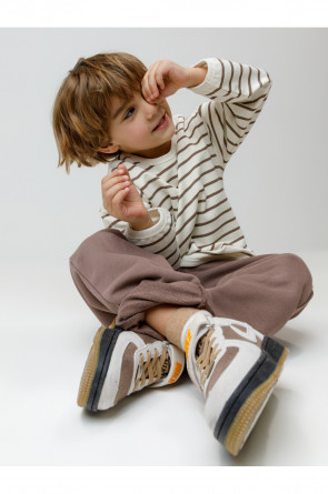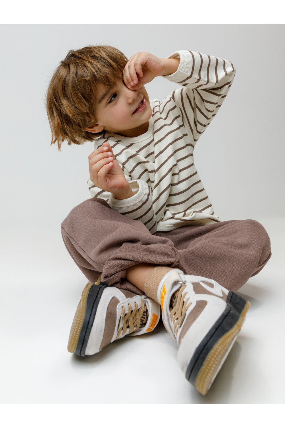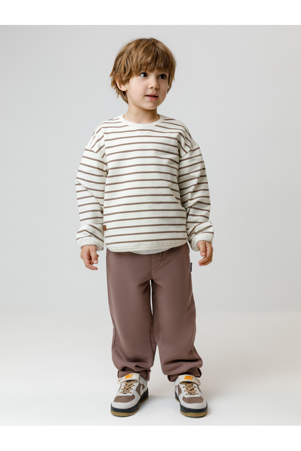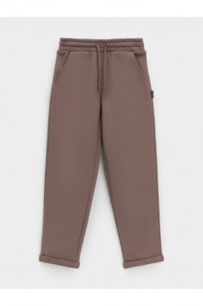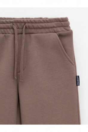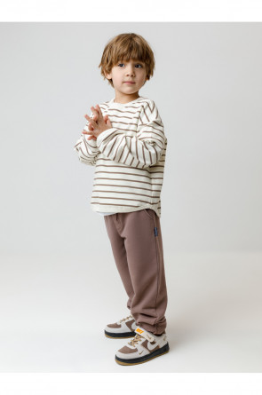 Брюки для мальчика из мягкого петельчатого футера трёхнитки. В составе 80% натурального хлопка и 20% полиэстера, при этом полиэстер ввязан внутрь по особой технологии и не соприкасается с кожей. Модель с эластичным поясом на резинке и утягивающим шнурком для регулировки по талии. По бокам два кармана. Изделие сохраняет цвет и форму после многократных стирок. Все трикотажные полотна производятся в соответствии с нормами швейцарского сертификата ЭкоТекс.