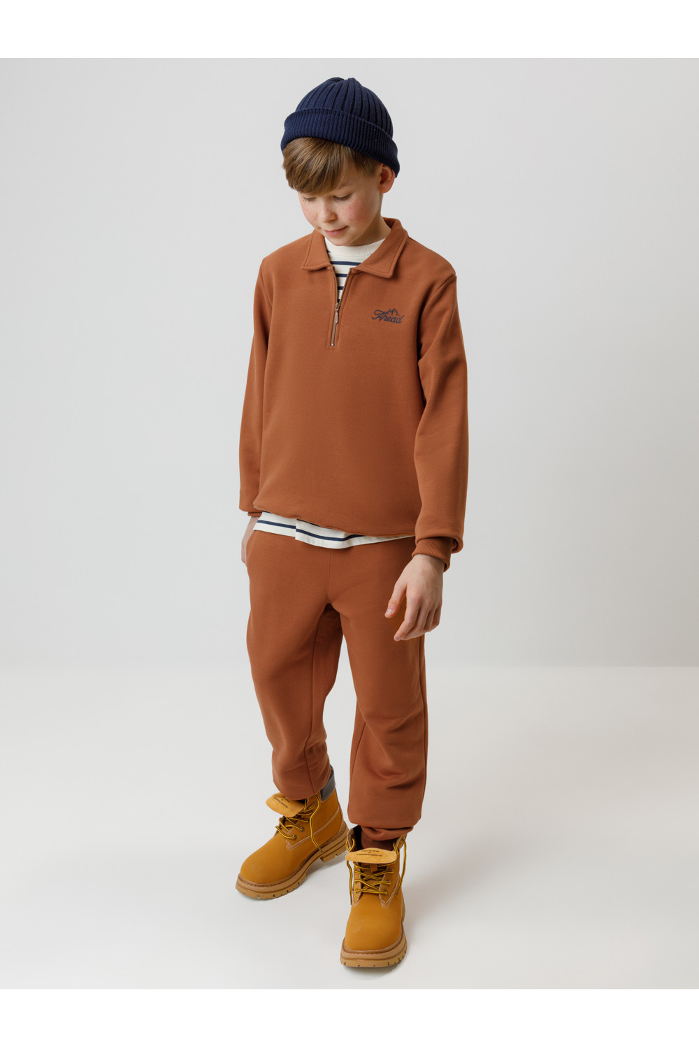 Тёплые брюки для мальчика из мягкого футера с начёсом. Модель с эластичным поясом на резинке регулируется по ширине с помощью шнурка. По бокам два удобных кармана. Низ на манжетах. Изделие сохраняет цвет и форму после многократных стирок. Все трикотажные полотна производятся в соответствии с нормами швейцарского сертификата ЭкоТекс.