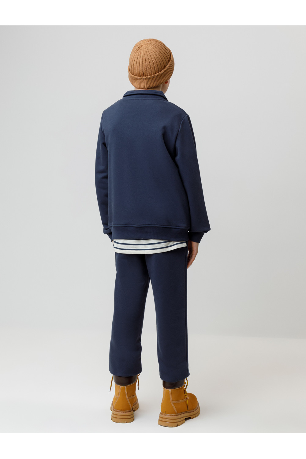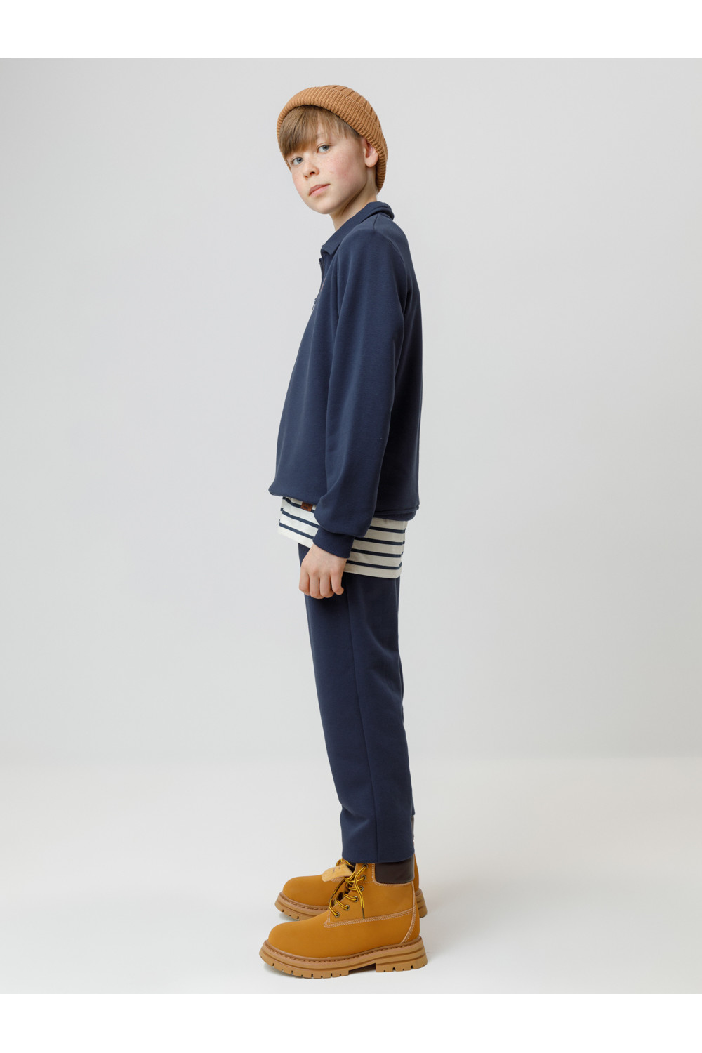 Тёплые брюки для мальчика из мягкого футера с начёсом. Модель с эластичным поясом на резинке регулируется по ширине с помощью шнурка. По бокам два удобных кармана. Низ на манжетах. Изделие сохраняет цвет и форму после многократных стирок. Все трикотажные полотна производятся в соответствии с нормами швейцарского сертификата ЭкоТекс.