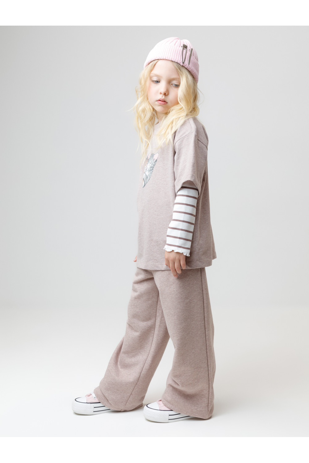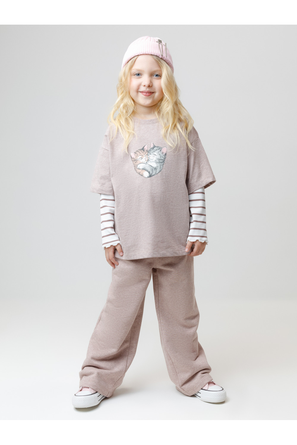 Прямые брюки с эластичным поясом для девочки. Изготовлены из мягкого петельчатого трикотажа. По бокам два удобных кармана. Изделие сохраняет цвет и форму после многократных стирок. Все трикотажные полотна производятся в соответствии с нормами швейцарского сертификата ЭкоТекс.