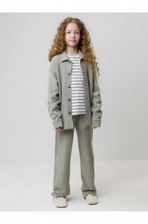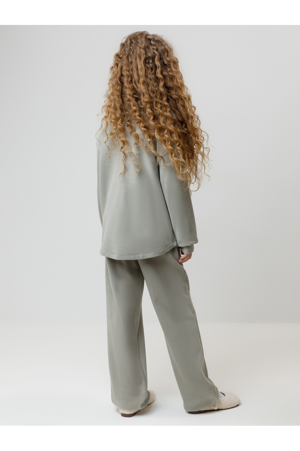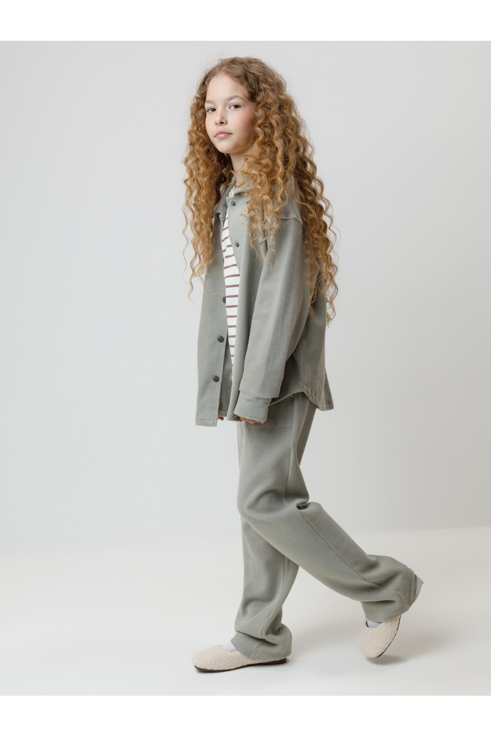 Прямые брюки для девочки из мягкого трикотажа селаник с peach эффектом. Peach эффект достигается с помощью технологии обработки полотна, при которой на его поверхности создаётся лёгкий ворс, напоминающий нежную текстуру кожи персика. Эластичный пояс на резинке регулируется по ширине с помощью шнурка. По бокам два удобных накладных кармана. Изделие сохраняет цвет и форму после многократных стирок. Все трикотажные полотна производятся в соответствии с нормами швейцарского сертификата ЭкоТекс.