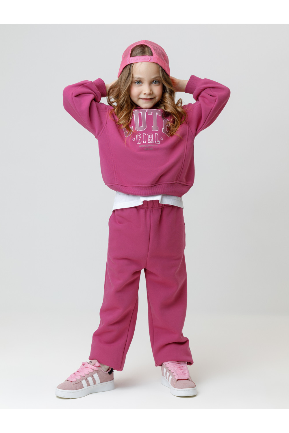 Тёплые брюки с начёсом для девочки. Эластичный пояс на резинке регулируется по ширине с помощью шнурка. По бокам два удобных кармана. Низ на манжетах. Изделие сохраняет цвет и форму после многократных стирок. Все трикотажные полотна производятся в соответствии с нормами швейцарского сертификата ЭкоТекс.