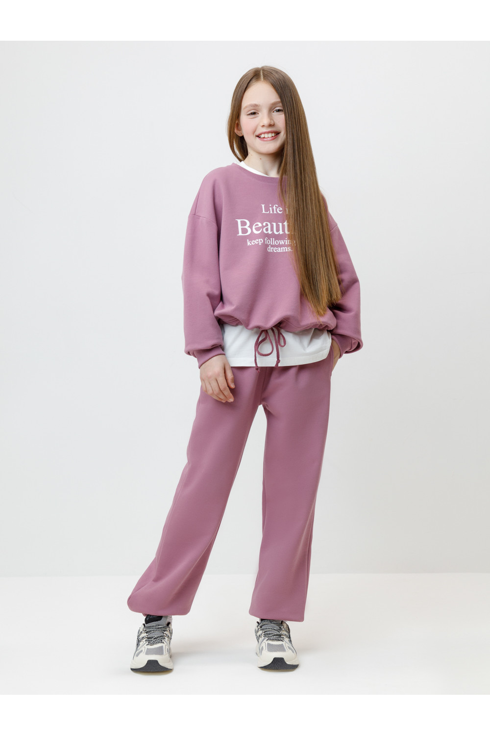 Брюки для девочки из мягкого петельчатого трикотажа.В составе 80% натурального хлопка и 20% полиэстера, при этом полиэстер ввязан внутрь по особой технологии и не соприкасается с кожей. Эластичный пояс на резинке регулируется по ширине с помощью шнурка. Внизу эластичные манжеты. По бокам два удобных кармана. Изделие сохраняет цвет и форму после многократных стирок. Все трикотажные полотна производятся в соответствии с нормами швейцарского сертификата ЭкоТекс.
