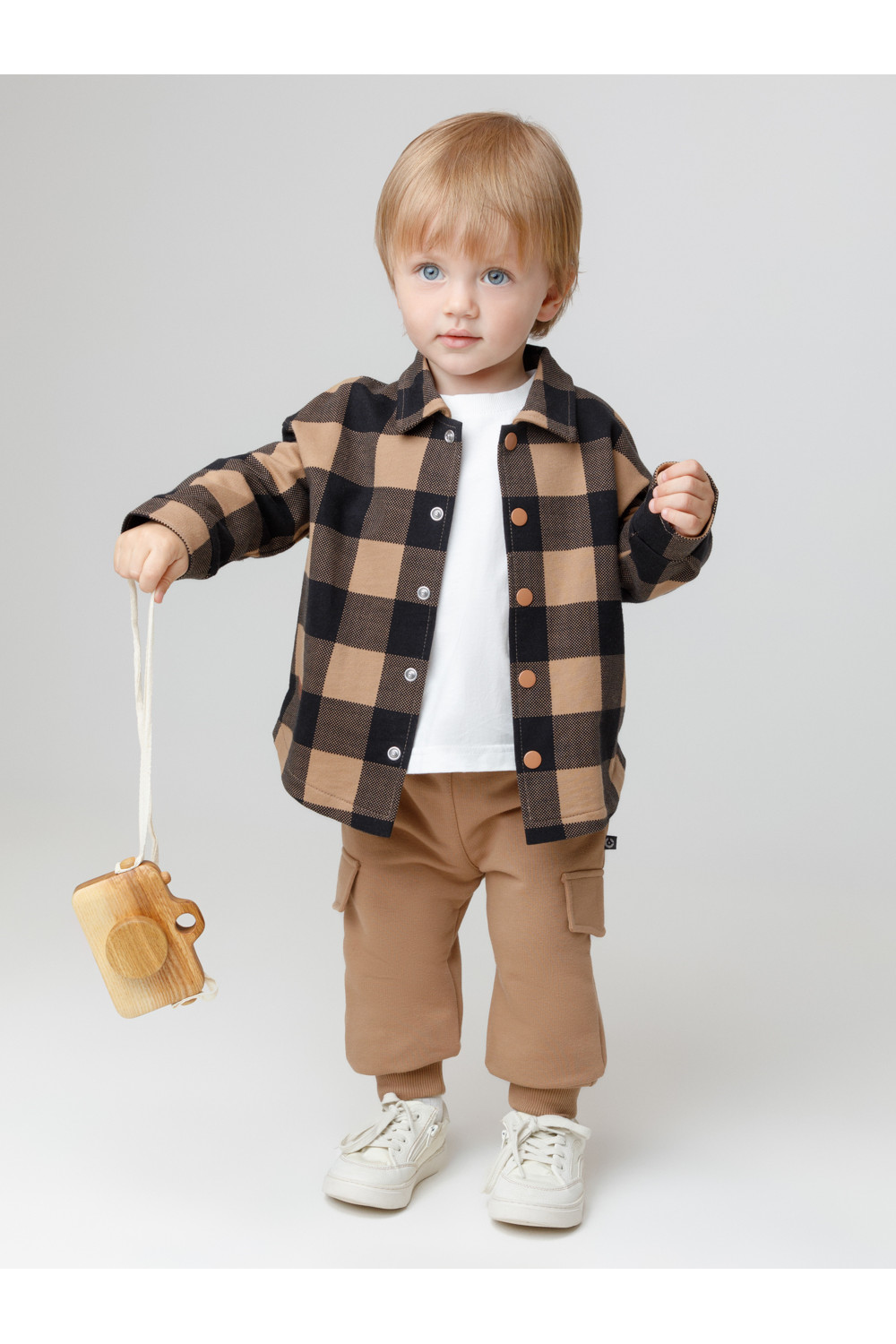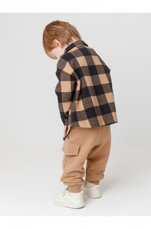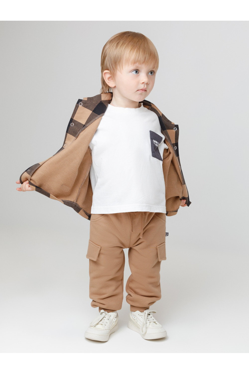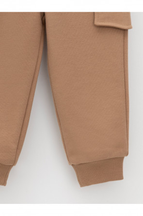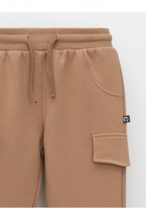 Брюки для мальчика из мягкого петельчатого футера трёхнитки. В составе 80% натурального хлопка и 20% полиэстера, при этом полиэстер ввязан внутрь по особой технологии и не соприкасается с кожей. Модель с эластичным поясом на резинке и утягивающим шнурком для регулировки по талии. По бокам два накладных клапана без карманов. Низ на манжетах. Изделие сохраняет цвет и форму после многократных стирок. Все трикотажные полотна производятся в соответствии с нормами швейцарского сертификата ЭкоТекс.