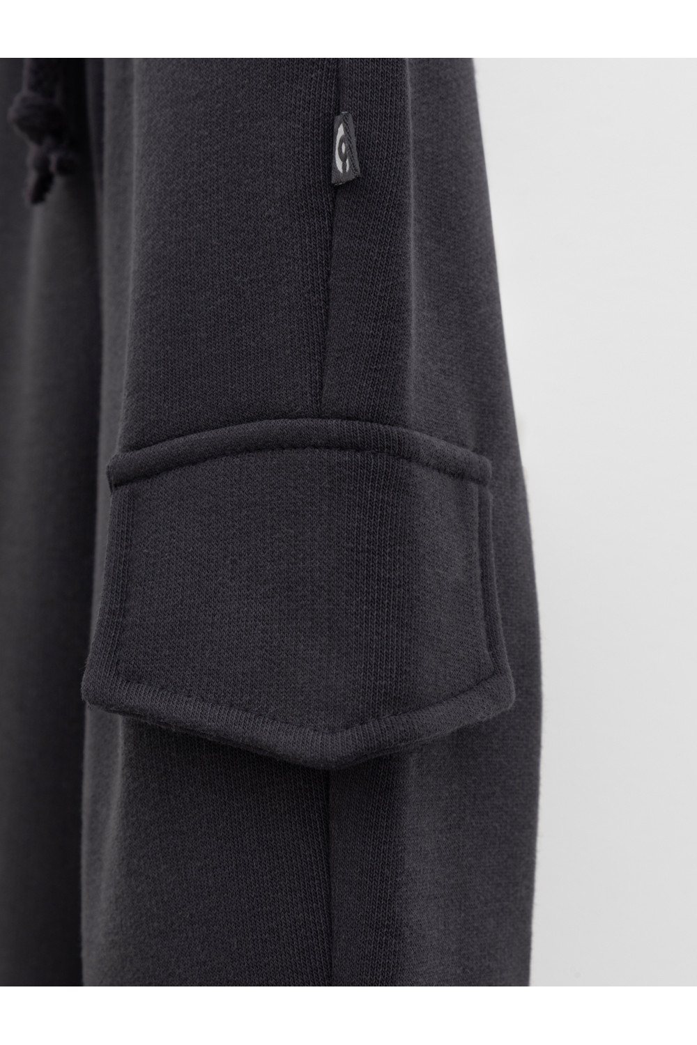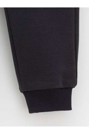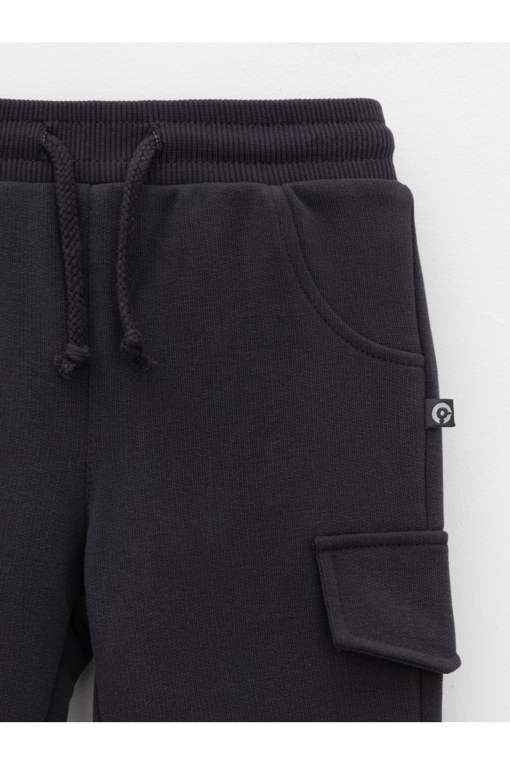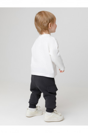 Брюки для мальчика из мягкого петельчатого футера трёхнитки. В составе 80% натурального хлопка и 20% полиэстера, при этом полиэстер ввязан внутрь по особой технологии и не соприкасается с кожей. Модель с эластичным поясом на резинке и утягивающим шнурком для регулировки по талии. По бокам два накладных клапана без карманов. Низ на манжетах. Изделие сохраняет цвет и форму после многократных стирок. Все трикотажные полотна производятся в соответствии с нормами швейцарского сертификата ЭкоТекс.