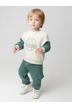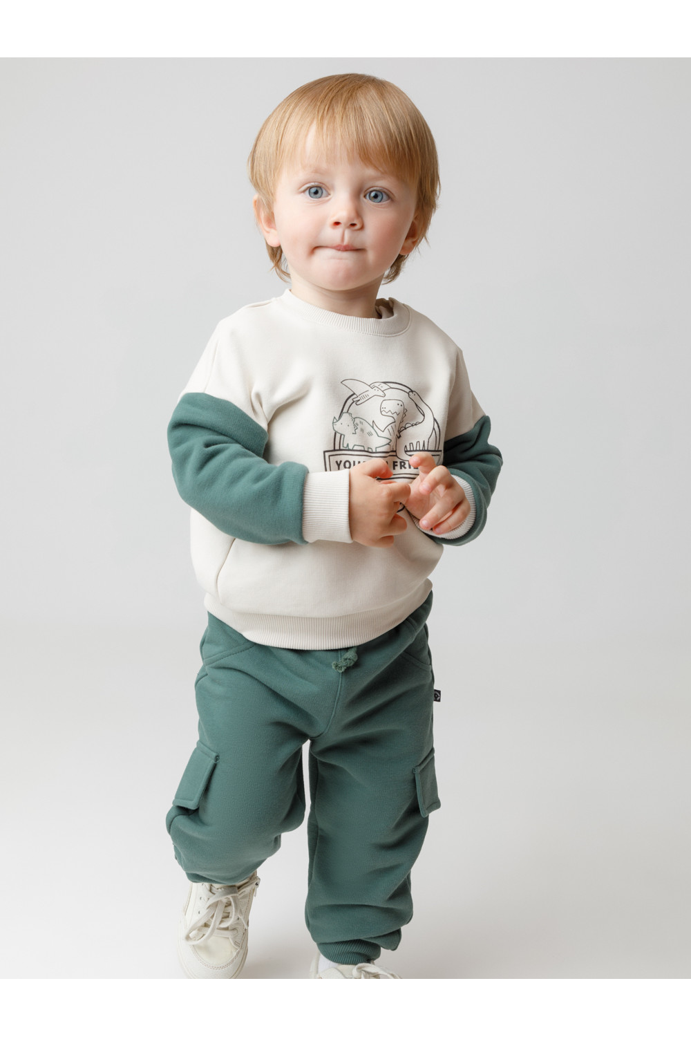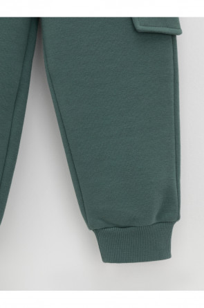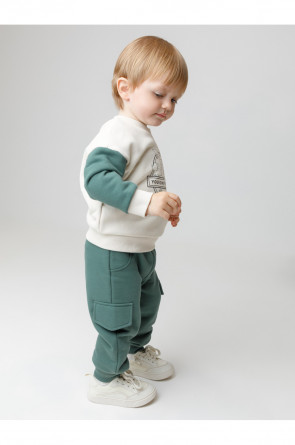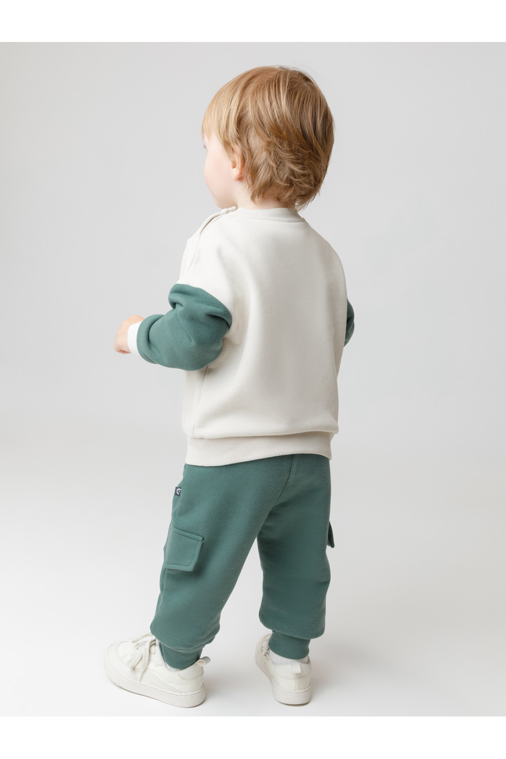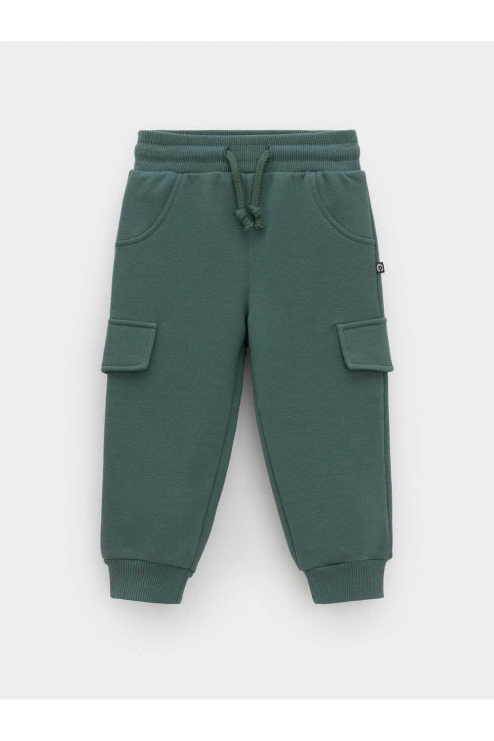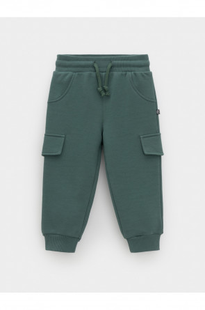 Брюки для мальчика из мягкого петельчатого футера трёхнитки. В составе 80% натурального хлопка и 20% полиэстера, при этом полиэстер ввязан внутрь по особой технологии и не соприкасается с кожей. Модель с эластичным поясом на резинке и утягивающим шнурком для регулировки по талии. По бокам два накладных клапана без карманов. Низ на манжетах. Изделие сохраняет цвет и форму после многократных стирок. Все трикотажные полотна производятся в соответствии с нормами швейцарского сертификата ЭкоТекс.