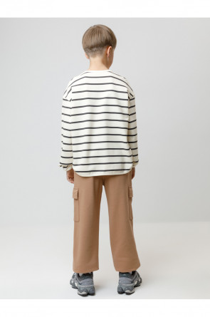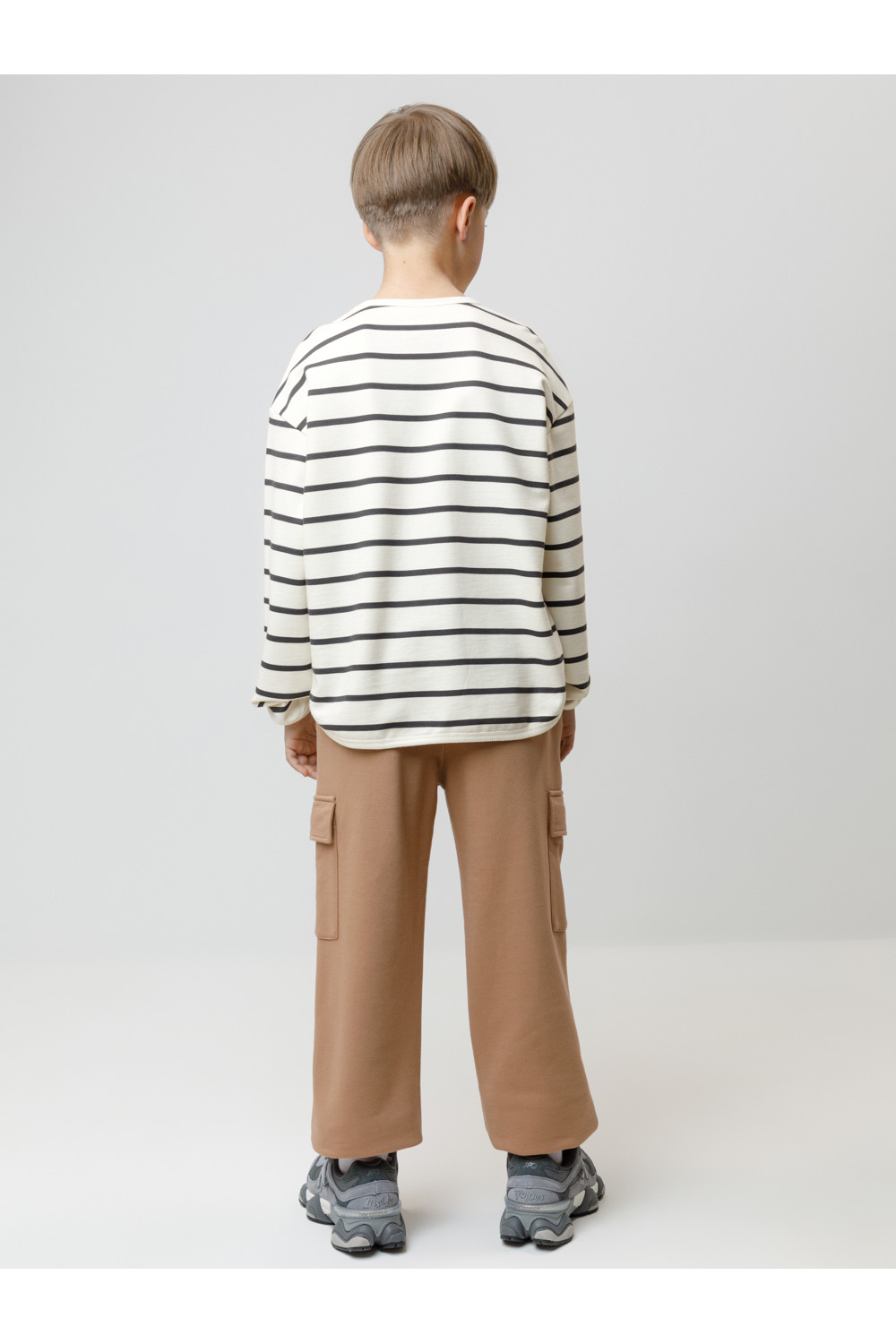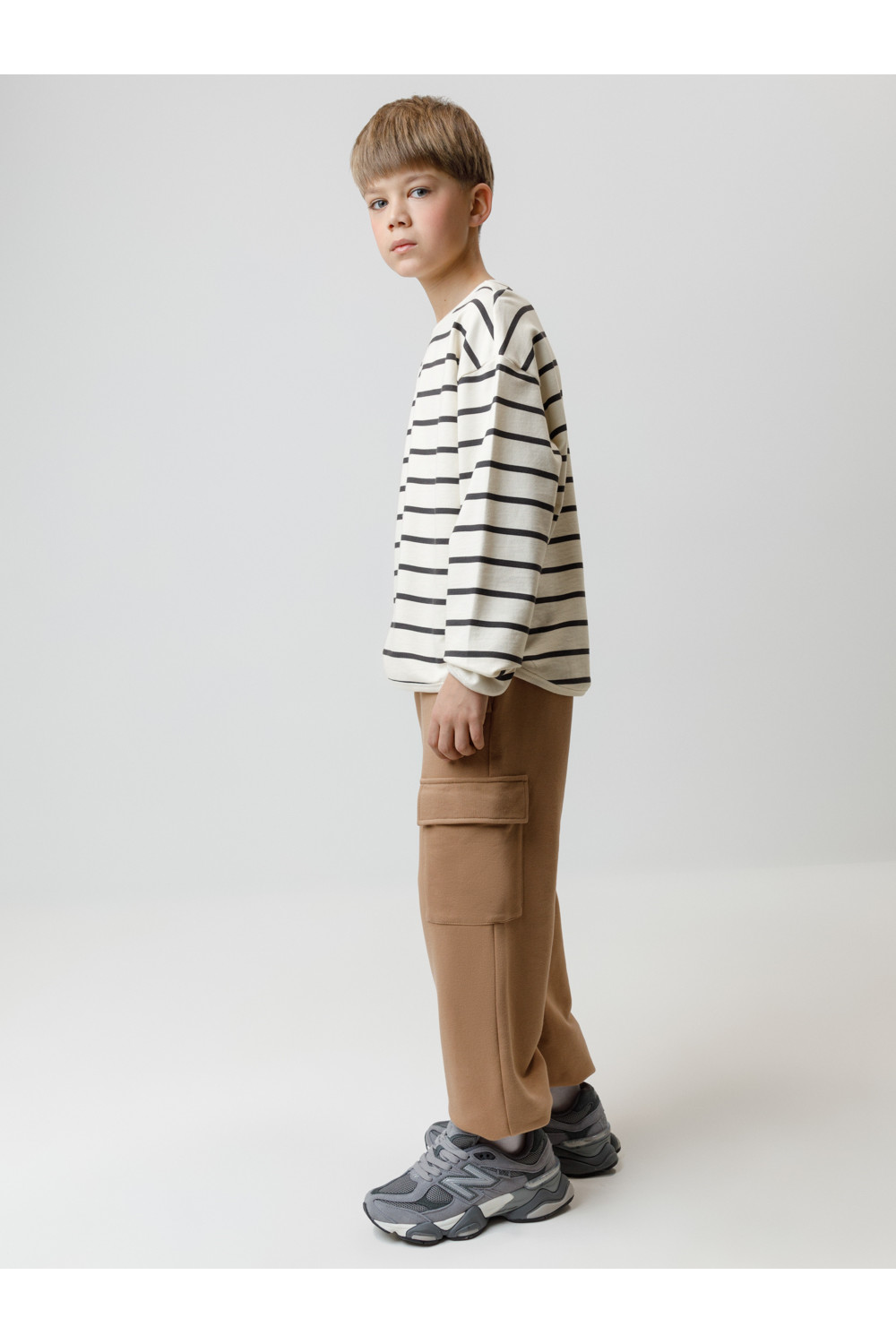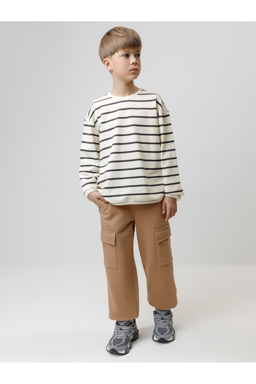 Брюки для мальчика из мягкого петельчатого футера трёхнитки. В составе 80% натурального хлопка и 20% полиэстера, при этом полиэстер ввязан внутрь по особой технологии и не соприкасается с кожей. Модель с эластичным поясом на резинке и утягивающим шнурком для регулировки по талии. По бокам четыре удобных кармана. Низ на манжетах. Изделие сохраняет цвет и форму после многократных стирок. Все трикотажные полотна производятся в соответствии с нормами швейцарского сертификата ЭкоТекс.