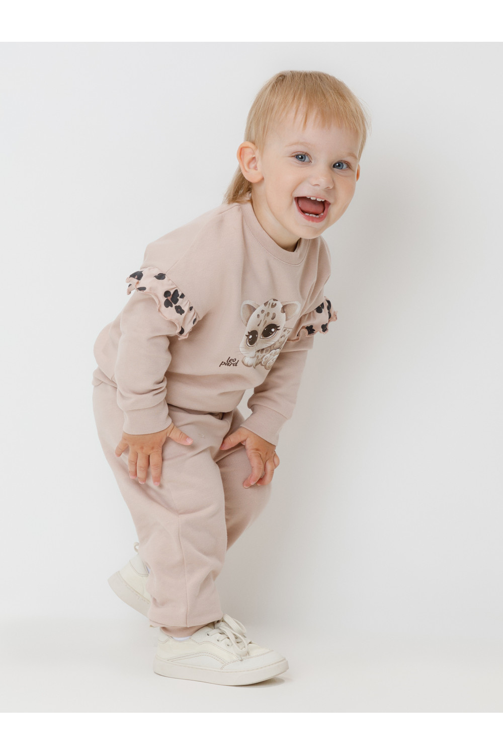 Тёплые брюки для девочки из мягкого футера с начёсом. Модель с эластичным поясом на резинке. Низ на манжетах. Все трикотажные полотна производятся в соответствии с нормами швейцарского сертификата ЭкоТекс.