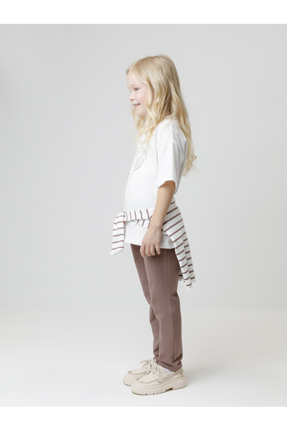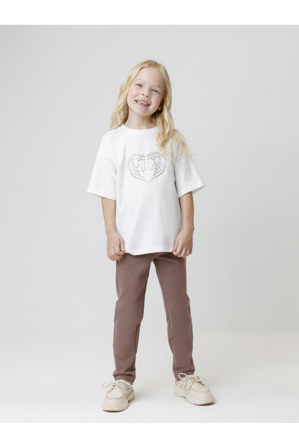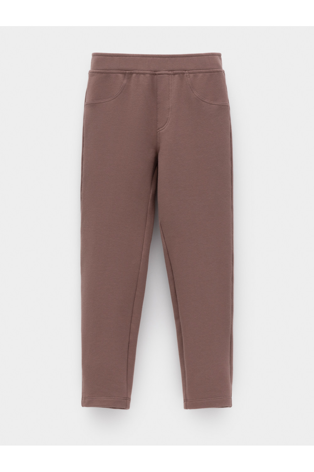 Брюки с имитацией карманов и гульфика для девочки. Изготовлены из мягкого эластичного футера. Пояс на резинке. Изделие сохраняет форму и стойкий цвет после многочисленных стирок и идеально подходит на каждый день. Все трикотажные полотна производятся в соответствии с нормами швейцарского сертификата ЭкоТекс.