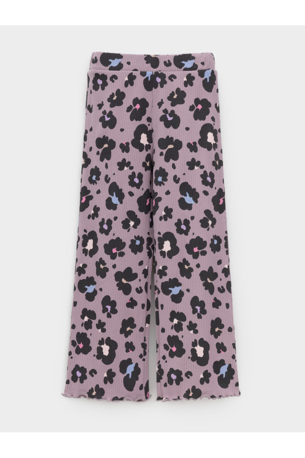 Брюки из эластичного трикотажа в рубчик для девочки. Мягкий пояс на резинке идеально садится по фигуре. Оригинальный рисунок выполнен из стойких текстильных гипоаллергенных красителей. Изделие сохраняет цвет и форму после многократных стирок. Все трикотажные полотна производятся в соответствии с нормами швейцарского сертификата ЭкоТекс.