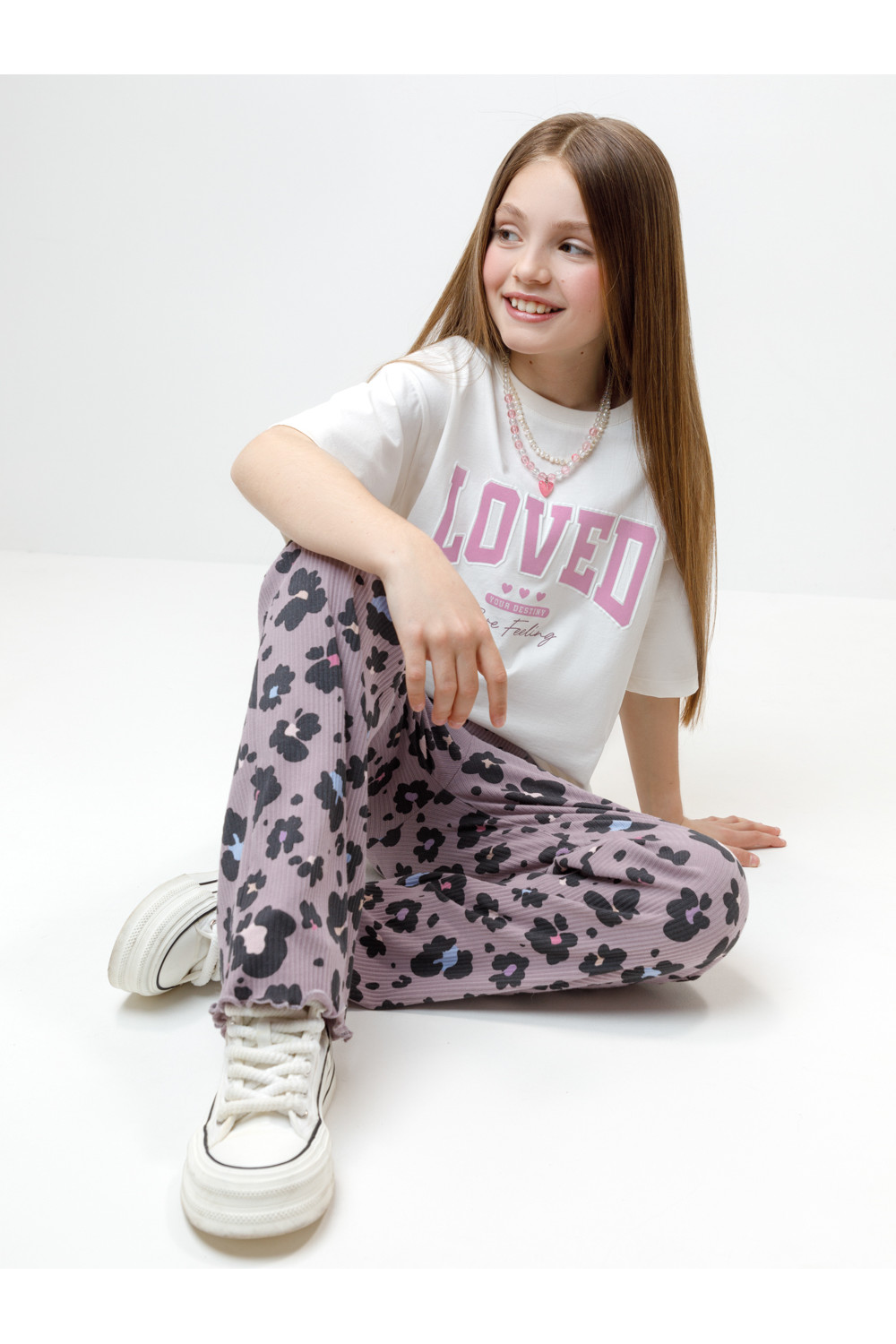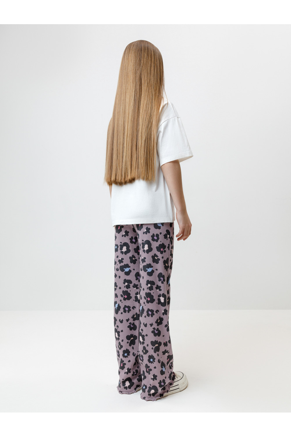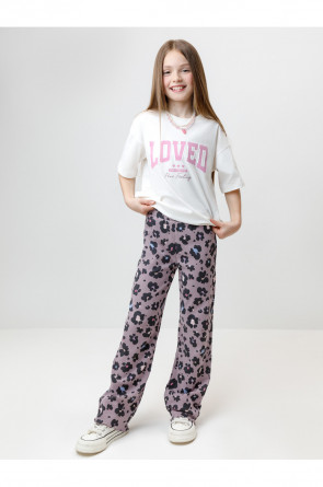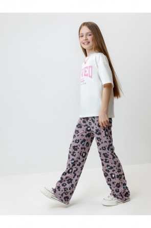 Брюки из эластичного трикотажа в рубчик для девочки. Мягкий пояс на резинке идеально садится по фигуре. Оригинальный рисунок выполнен из стойких текстильных гипоаллергенных красителей. Изделие сохраняет цвет и форму после многократных стирок. Все трикотажные полотна производятся в соответствии с нормами швейцарского сертификата ЭкоТекс.