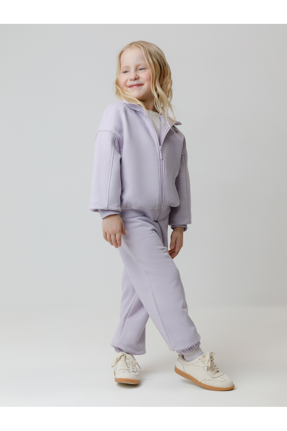 Брюки из мягкого петельчатого футера для девочки. Модель с эластичным поясом на резинке. По бокам два удобных кармана. Низ на манжетах. Изделие сохраняет цвет и форму после многократных стирок. Все трикотажные полотна производятся в соответствии с нормами швейцарского сертификата ЭкоТекс.