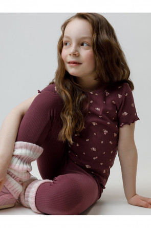 Лосины в рубчик из эластичного трикотажа для девочки. Изделие сохраняет цвет и форму после многократных стирок. Все трикотажные полотна производятся в соответствии с нормами швейцарского сертификата ЭкоТекс.