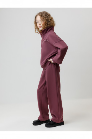 Прямые брюки для девочки. Изготовлены из премиального трикотажного полотна DOUBLE FACE. Эластичный пояс регулируется по ширине с помощью шнурка. По бокам два удобных кармана. Изделие сохраняет цвет и форму после многократных стирок. Все трикотажные полотна производятся в соответствии с нормами швейцарского сертификата ЭкоТекс.