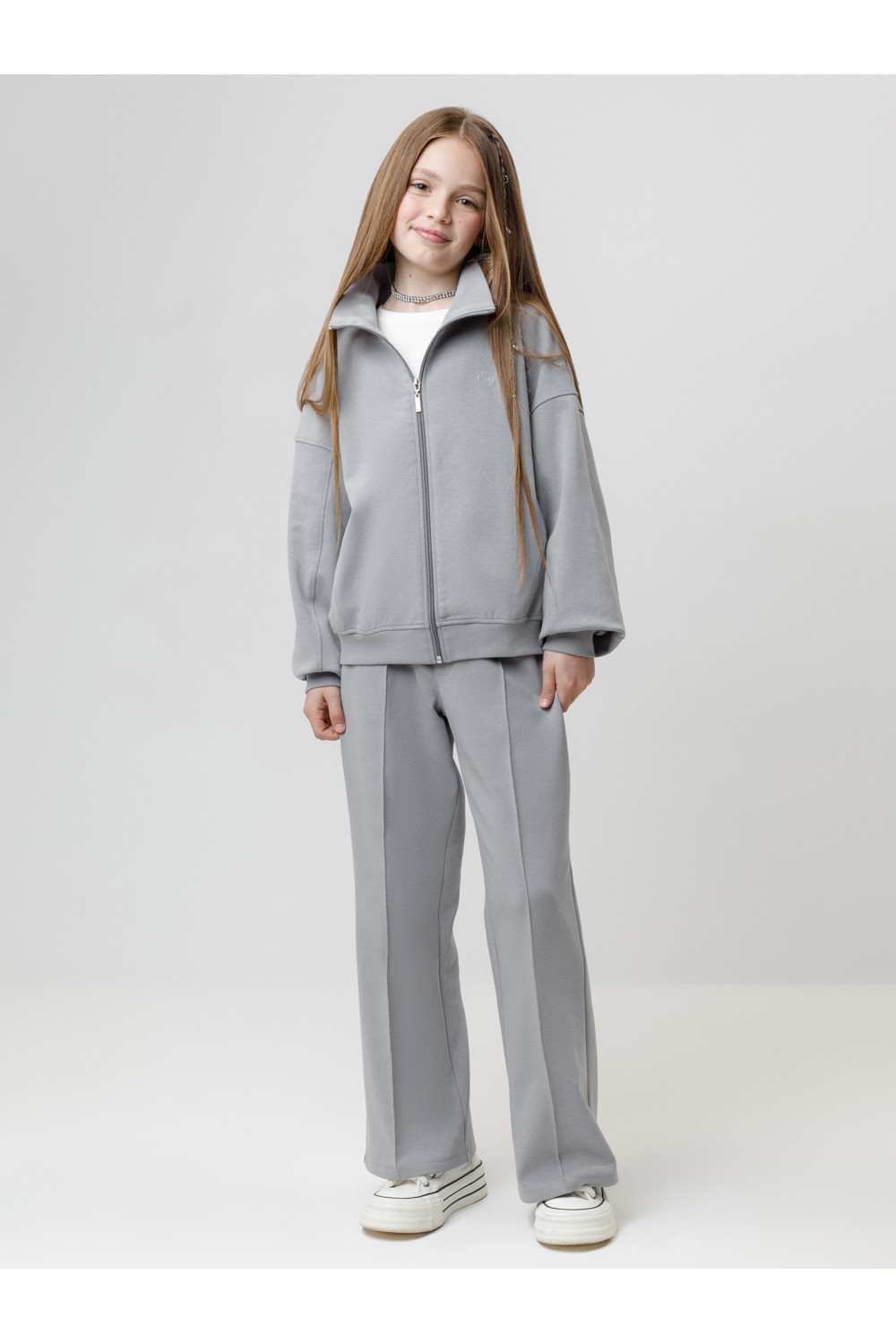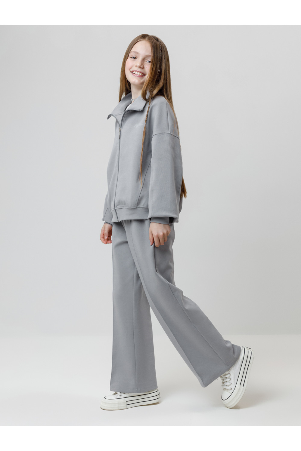 Прямые брюки со стрелками для девочки. Изготовлены из премиального трикотажного полотна DOUBLE FACE. Эластичный пояс регулируется по ширине с помощью шнурка. По бокам два удобных кармана. Изделие сохраняет цвет и форму после многократных стирок. Все трикотажные полотна производятся в соответствии с нормами швейцарского сертификата ЭкоТекс.