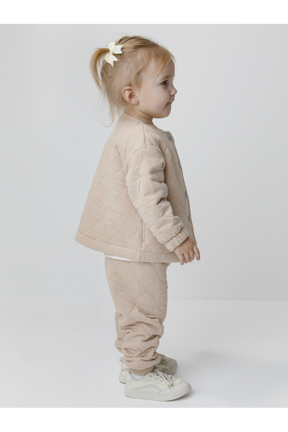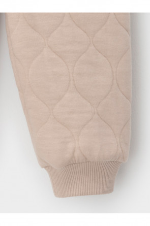 Тёплые брюки для девочки из мягкого капитония. Капитоний — это стёганое трикотажное полотно с утеплителем из полиэстеровой нити. Эластичный пояс на резинке регулируется по ширине с помощью шнурка, внизу манжеты на резинке. Изделие сохраняет цвет и форму после многократных стирок. Все трикотажные полотна производятся в соответствии с нормами швейцарского сертификата ЭкоТекс.