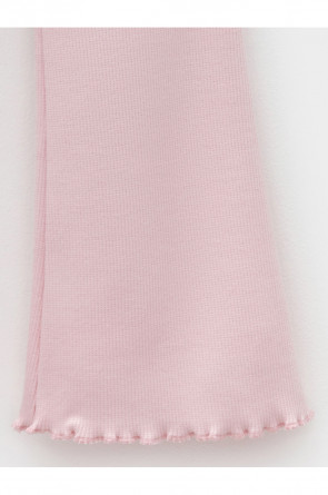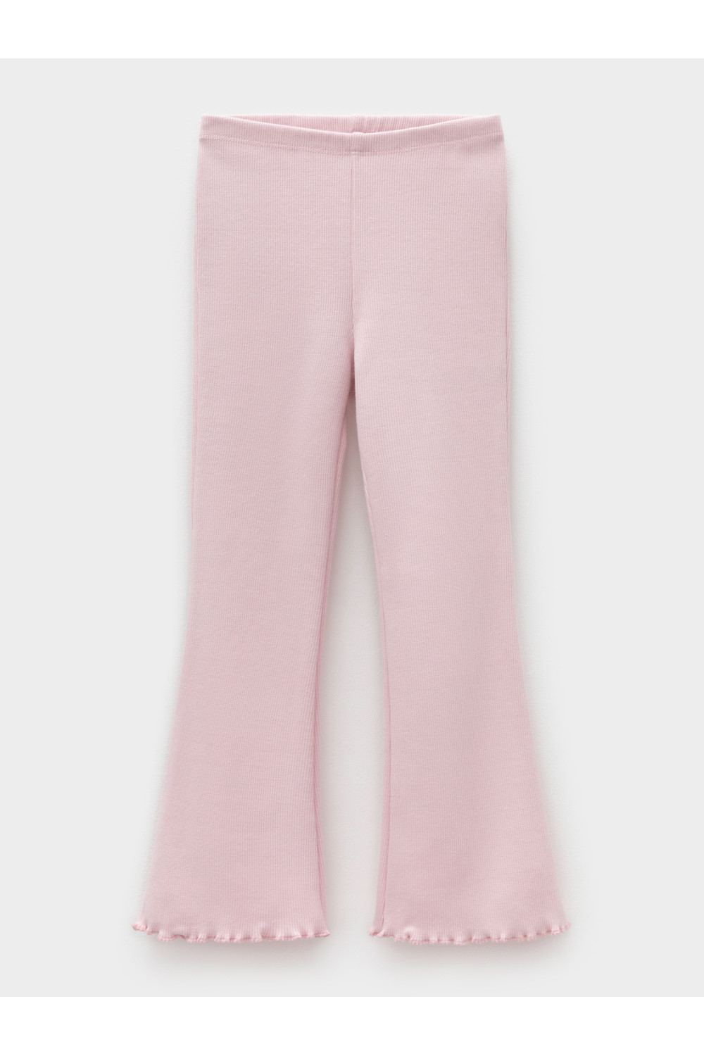 Брюки для девочки из эластичного трикотажа в рубчик. Пояс на резинке. Изделие сохраняет цвет и форму после многократных стирок. Все трикотажные полотна производятся в соответствии с нормами швейцарского сертификата ЭкоТекс.