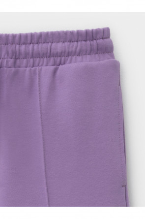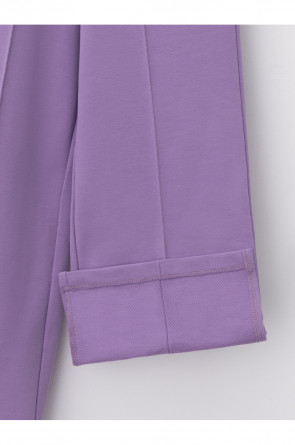 Однотонные брюки со стрелками для девочки. Изготовлены из мягкого петельчатого футера. Модель с эластичным поясом на резинке. Снизу по бокам разрезы. Изделие сохраняет цвет и форму после многократных стирок. Все трикотажные полотна производятся в соответствии с нормами швейцарского сертификата ЭкоТекс.