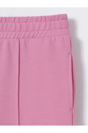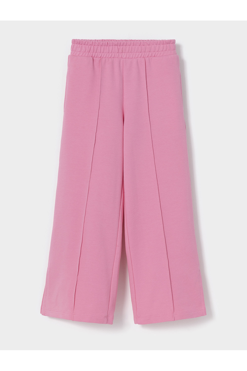 Однотонные брюки со стрелками для девочки. Изготовлены из мягкого трикотажа футера диагональ. Модель с эластичным поясом на резинке. Снизу по бокам разрезы. Изделие сохраняет цвет и форму после многократных стирок. Все трикотажные полотна производятся в соответствии с нормами швейцарского сертификата ЭкоТекс.