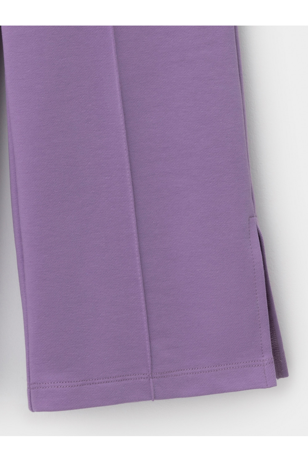 Однотонные брюки со стрелками для девочки. Изготовлены из мягкого петельчатого футера. Модель с эластичным поясом на резинке. Снизу по бокам разрезы. Изделие сохраняет цвет и форму после многократных стирок. Все трикотажные полотна производятся в соответствии с нормами швейцарского сертификата ЭкоТекс.