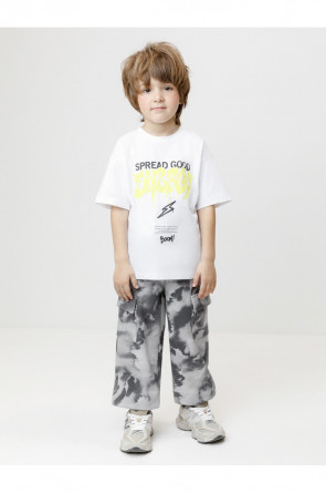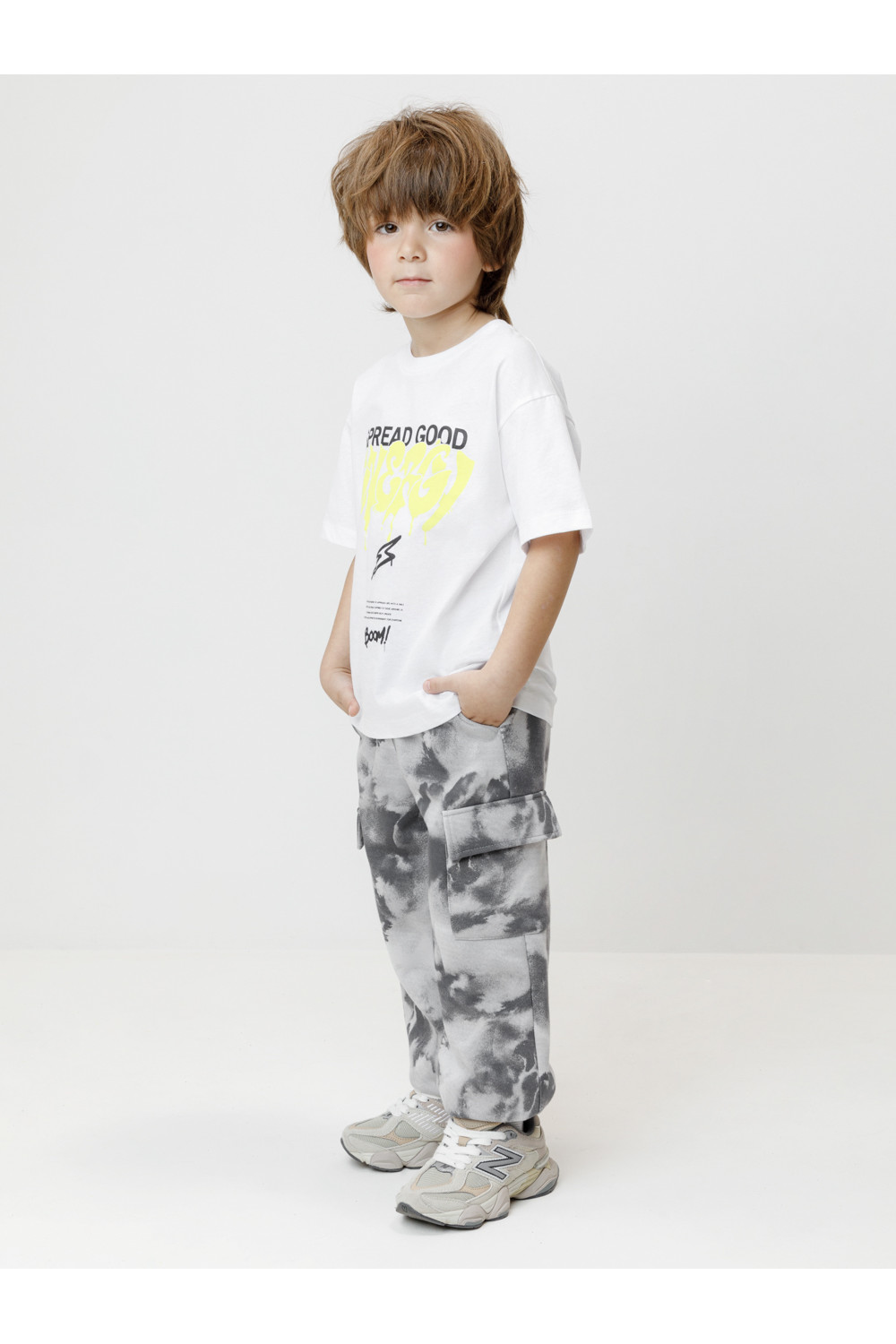 Брюки для мальчика из высококачественного трикотажного полотна. В составе 80% натурального хлопка и 20% полиэстера, при этом полиэстер ввязан внутрь по особой технологии и не соприкасается с кожей. Пояс регулируется по ширине при помощи шнурка. Низ на манжетах. Оригинальная набивка выполнена из стойких текстильных гипоаллергенных красителей. Изделие сохраняет цвет и форму после многократных стирок. Все трикотажные полотна производятся в соответствии с нормами швейцарского сертификата ЭкоТекс.