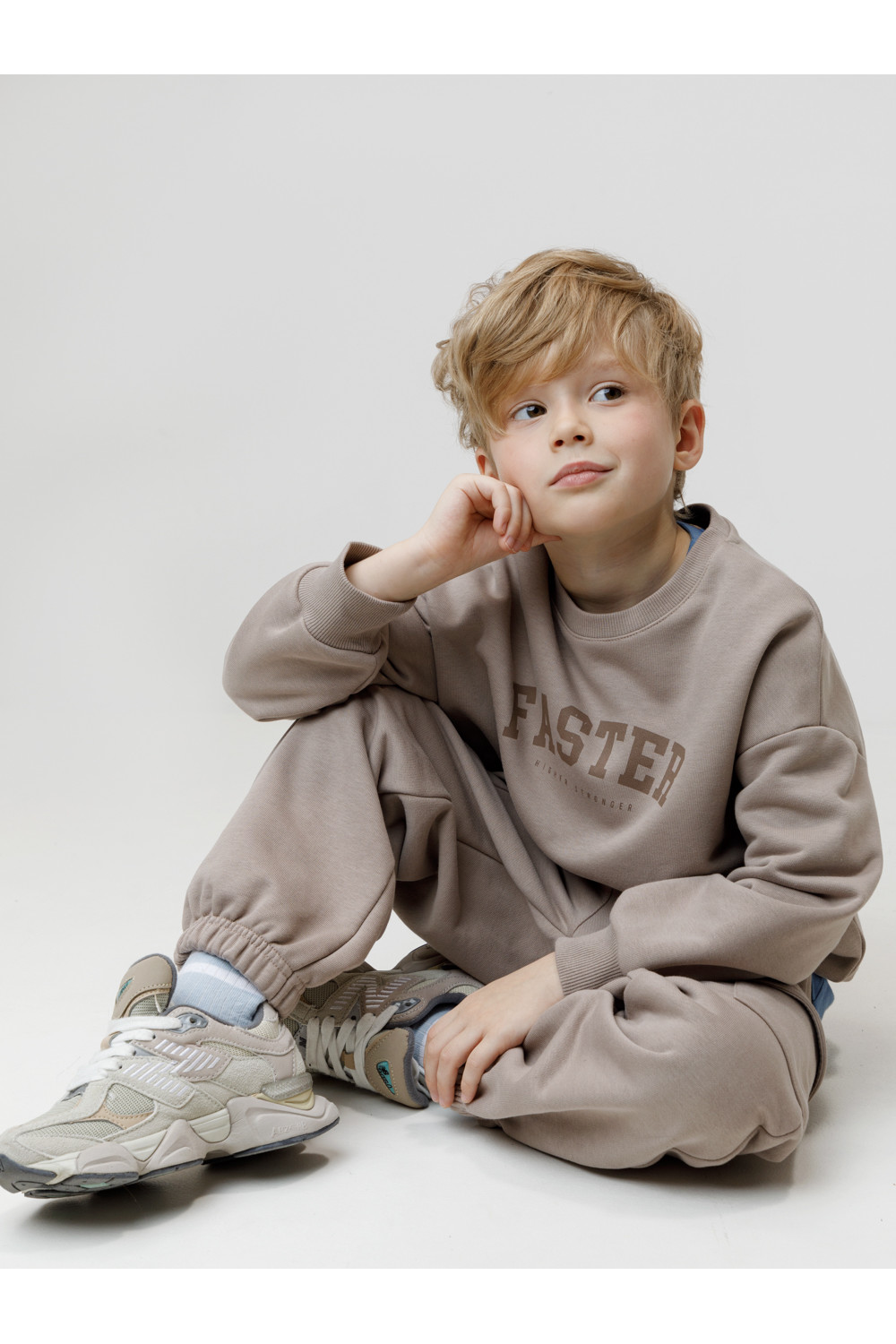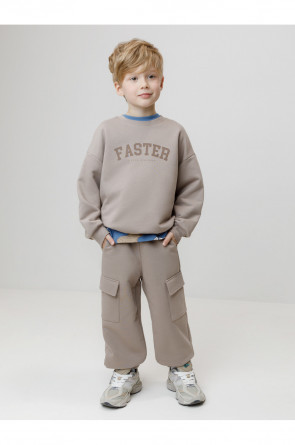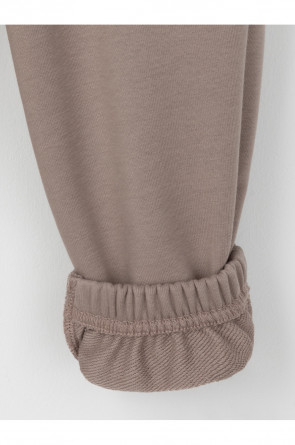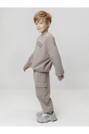 Брюки для мальчика из высококачественного трикотажного полотна. В составе 80% натурального хлопка и 20% полиэстера, при этом полиэстер ввязан внутрь по особой технологии и не соприкасается с кожей. Пояс регулируется по ширине при помощи шнурка. Низ на манжетах. Изделие сохраняет цвет и форму после многократных стирок. Все трикотажные полотна производятся в соответствии с нормами швейцарского сертификата ЭкоТекс.