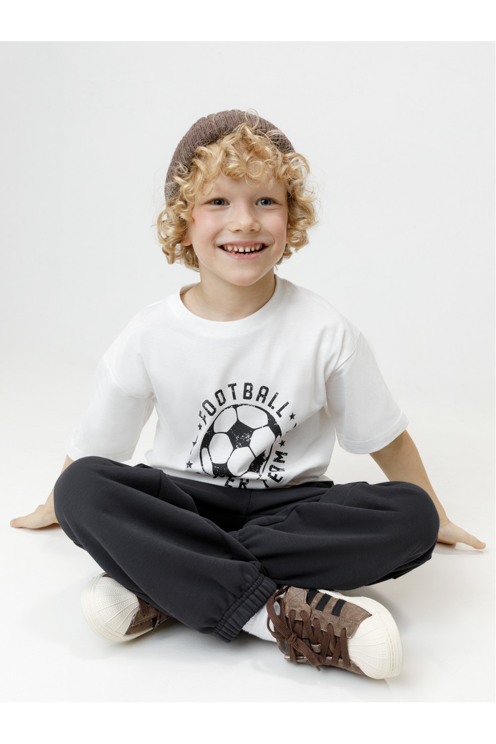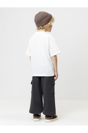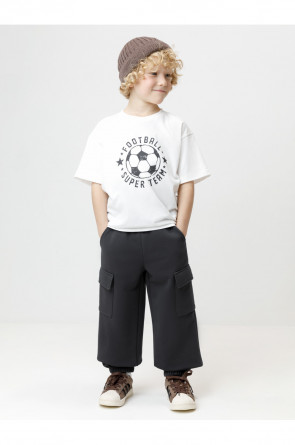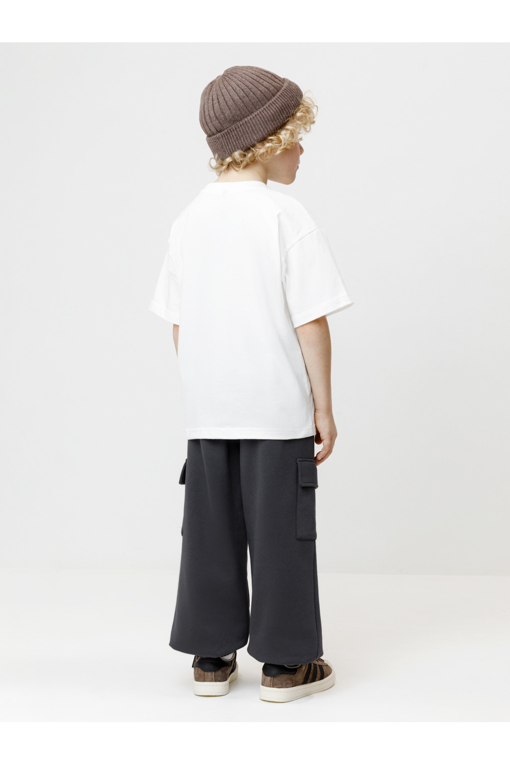 Брюки для мальчика из высококачественного трикотажного полотна. В составе 80% натурального хлопка и 20% полиэстера, при этом полиэстер ввязан внутрь по особой технологии и не соприкасается с кожей. Пояс регулируется по ширине при помощи шнурка. Низ на манжетах. Изделие сохраняет цвет и форму после многократных стирок. Все трикотажные полотна производятся в соответствии с нормами швейцарского сертификата ЭкоТекс.