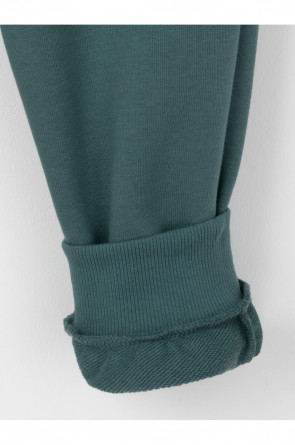 Брюки для мальчика из высококачественного трикотажного полотна. В составе 80% натурального хлопка и 20% полиэстера, при этом полиэстер ввязан внутрь по особой технологии и не соприкасается с кожей. Пояс регулируется по ширине при помощи шнурка. Низ на манжетах. Изделие сохраняет цвет и форму после многократных стирок. Все трикотажные полотна производятся в соответствии с нормами швейцарского сертификата ЭкоТекс.