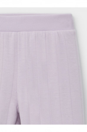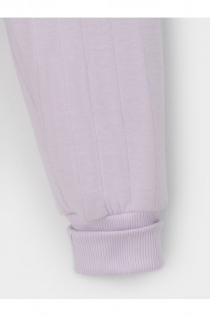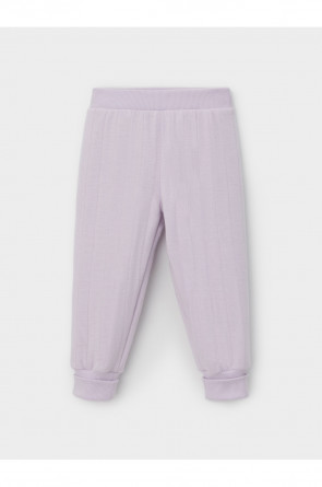 Тёплые брюки из капитония для девочки. Капитоний — это стёганое трикотажное полотно с утеплителем из полиэстеровой нити. У изделия мягкий пояс и эластичные манжеты. Все трикотажные полотна производятся в соответствии с нормами швейцарского сертификата ЭкоТекс.