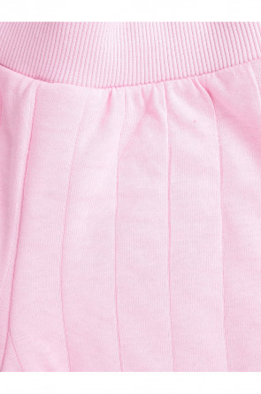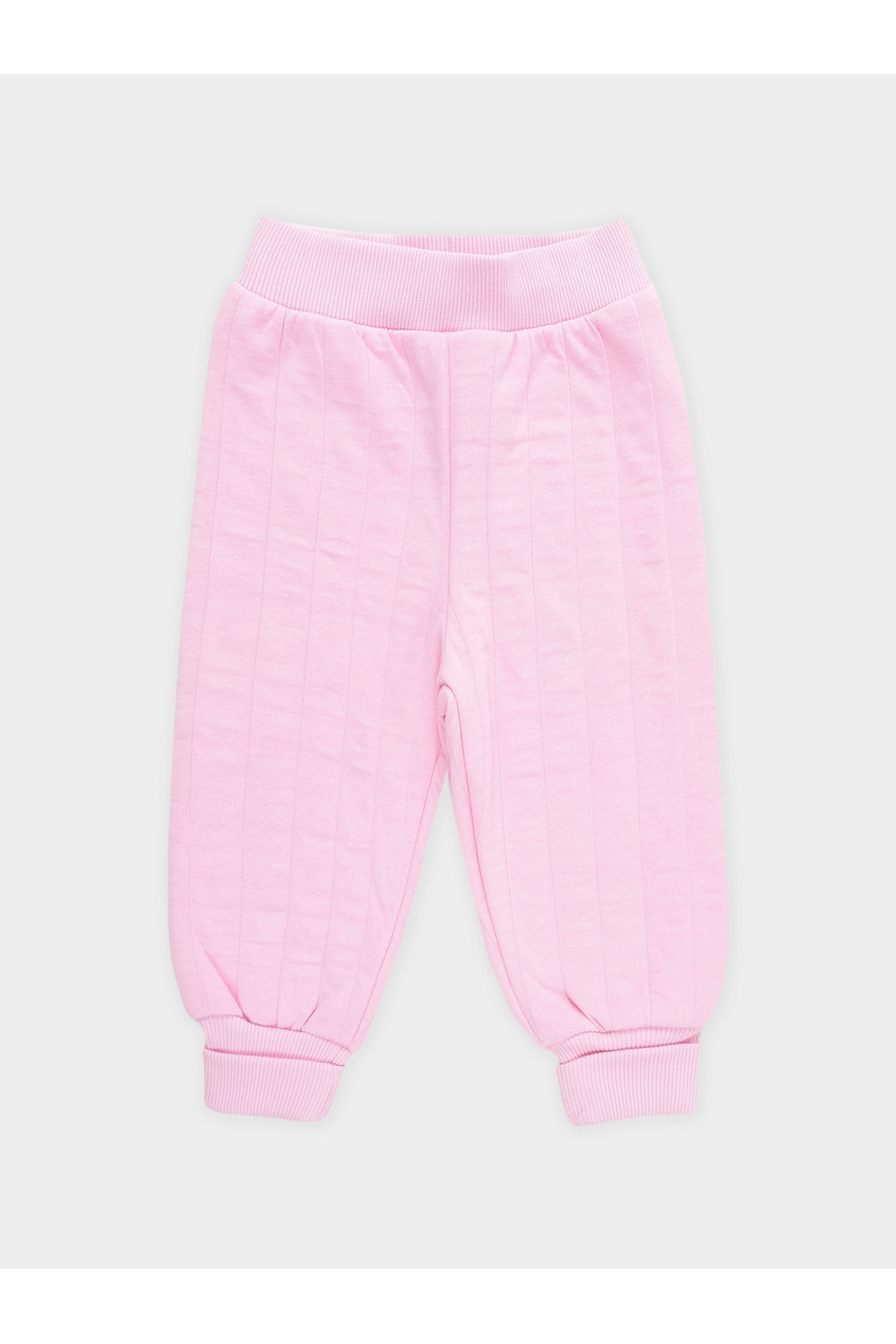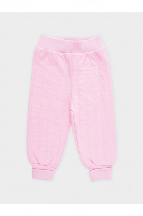 Тёплые брюки из капитония для девочки. Капитоний — это стёганое трикотажное полотно с утеплителем из полиэстеровой нити. У изделия мягкий пояс и эластичные манжеты. Все трикотажные полотна производятся в соответствии с нормами швейцарского сертификата ЭкоТекс.