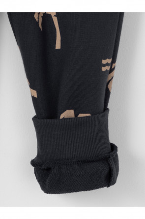 Брюки для мальчика из высококачественного трикотажного полотна. Пояс регулируется по ширине при помощи шнурка. Низ на манжетах. Оригинальная набивка выполнена из стойких текстильных гипоаллергенных красителей. Изделие сохраняет цвет и форму после многократных стирок. Все трикотажные полотна производятся в соответствии с нормами швейцарского сертификата ЭкоТекс.