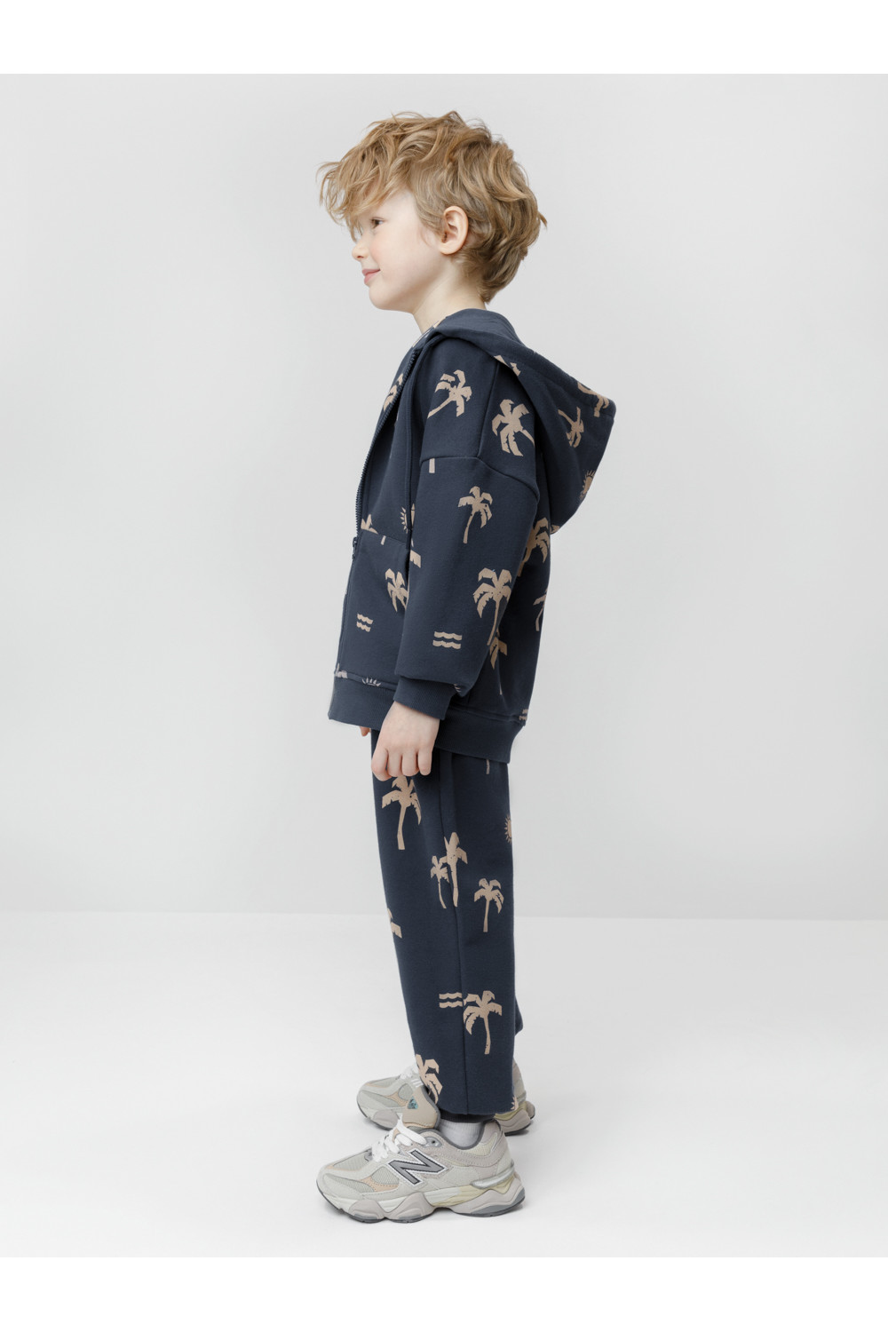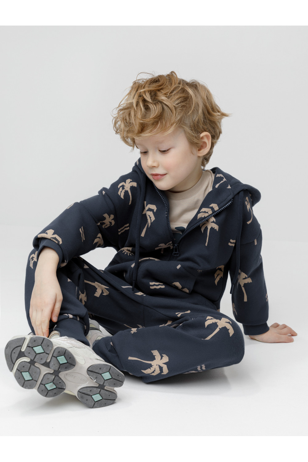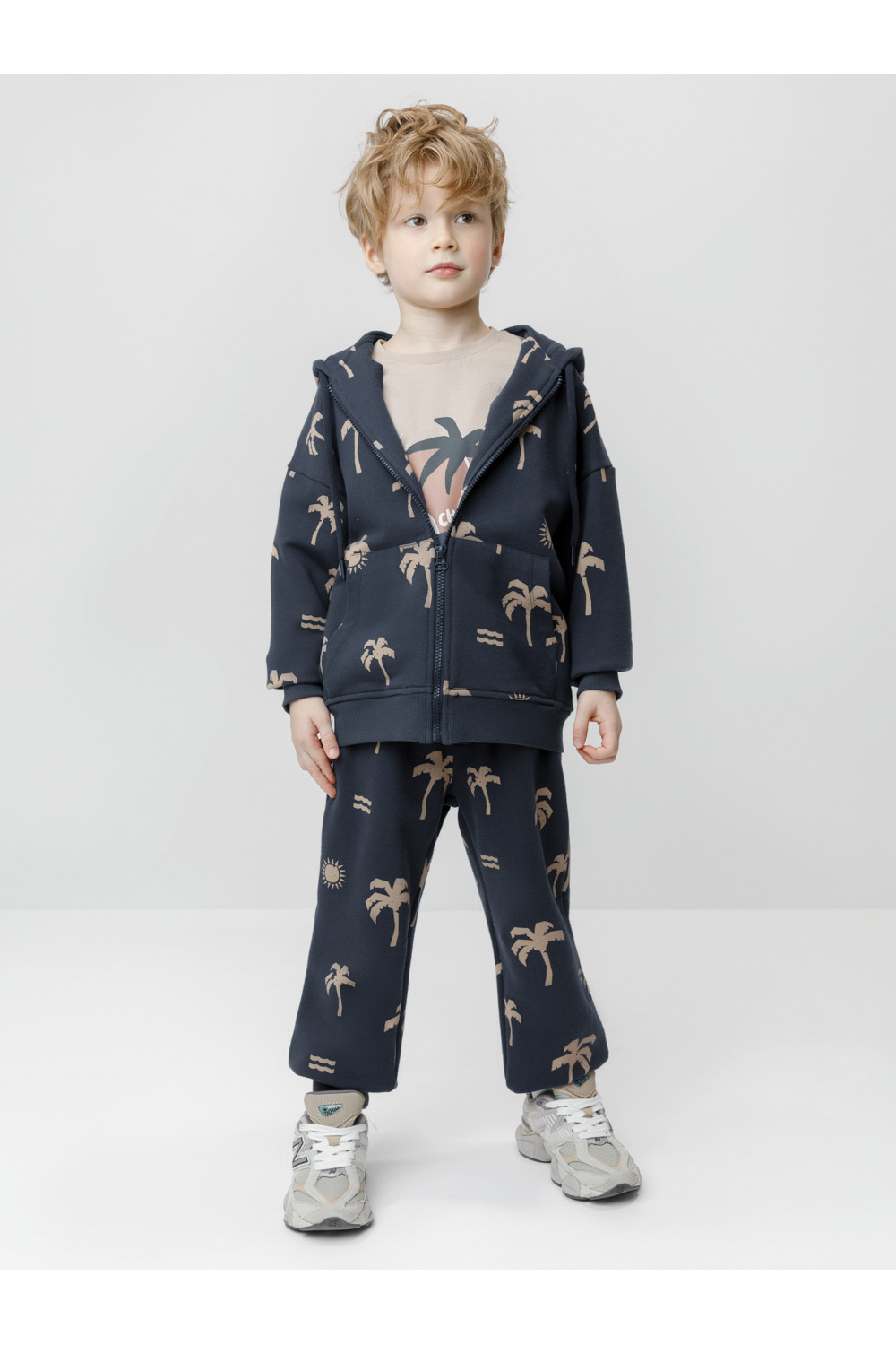 Брюки для мальчика из высококачественного трикотажного полотна. Пояс регулируется по ширине при помощи шнурка. Низ на манжетах. Оригинальная набивка выполнена из стойких текстильных гипоаллергенных красителей. Изделие сохраняет цвет и форму после многократных стирок. Все трикотажные полотна производятся в соответствии с нормами швейцарского сертификата ЭкоТекс.