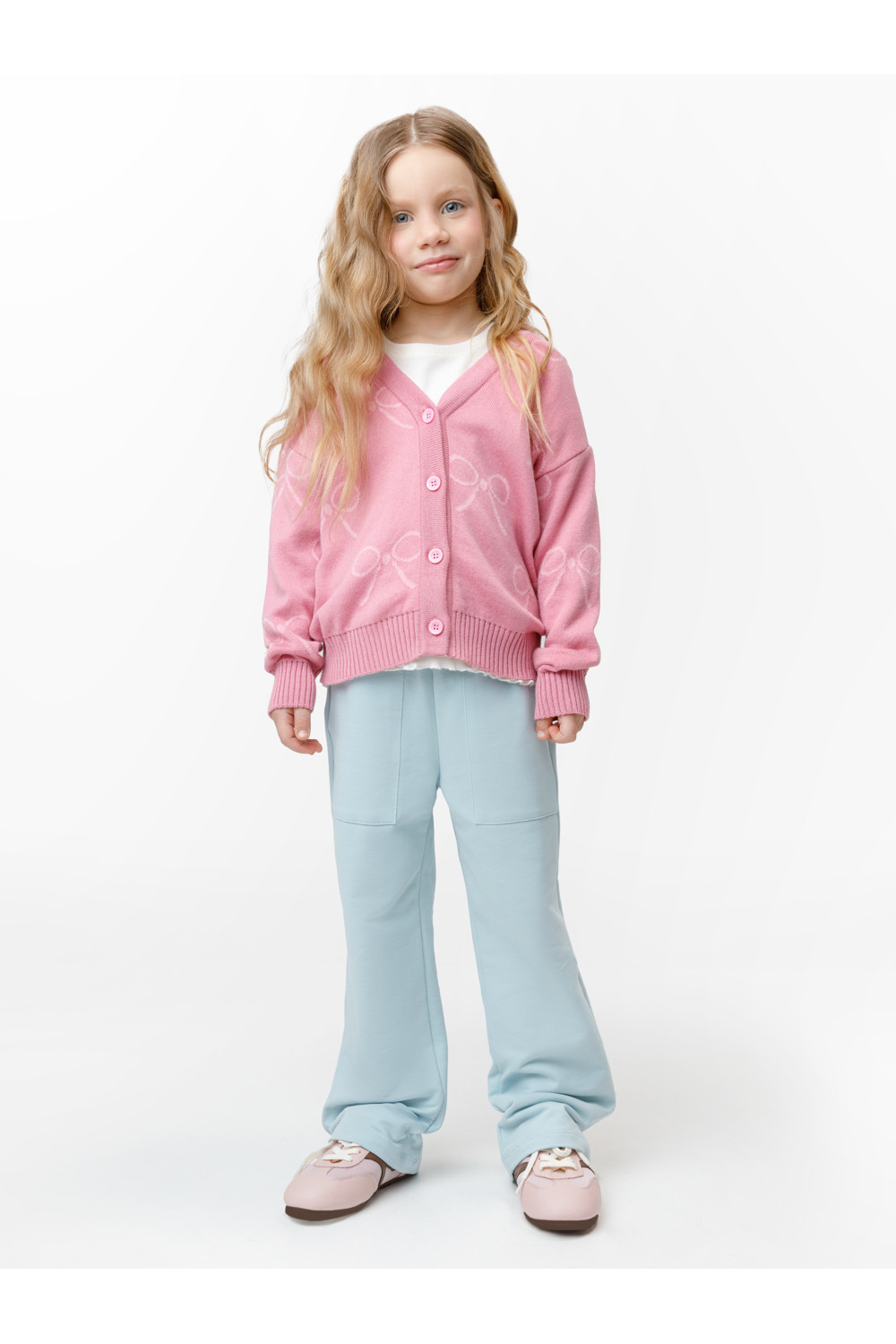 Брюки из мягкого петельчатого футера для девочки. Модель с эластичным поясом на резинке и регулировкой по талии с помощью шнурка. Изделие сохраняет цвет и форму после многократных стирок. Все трикотажные полотна производятся в соответствии с нормами швейцарского сертификата ЭкоТекс.
