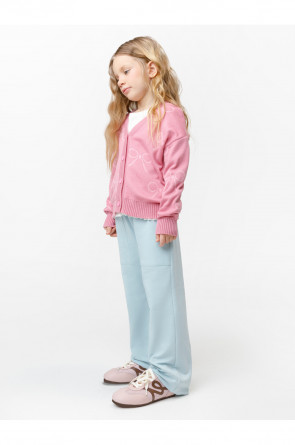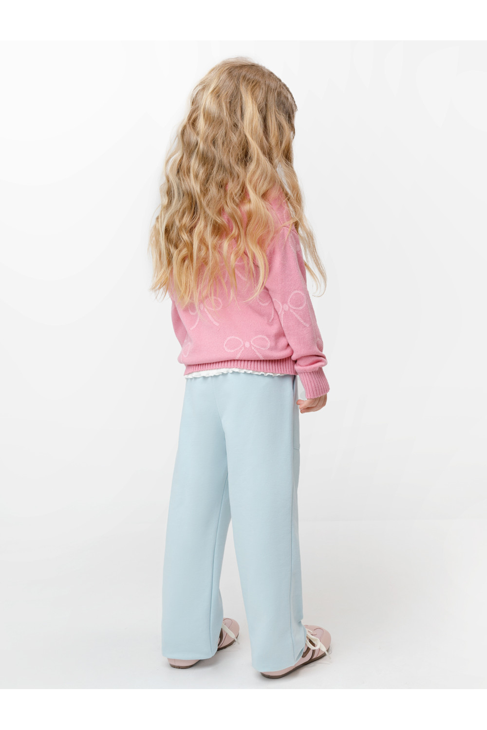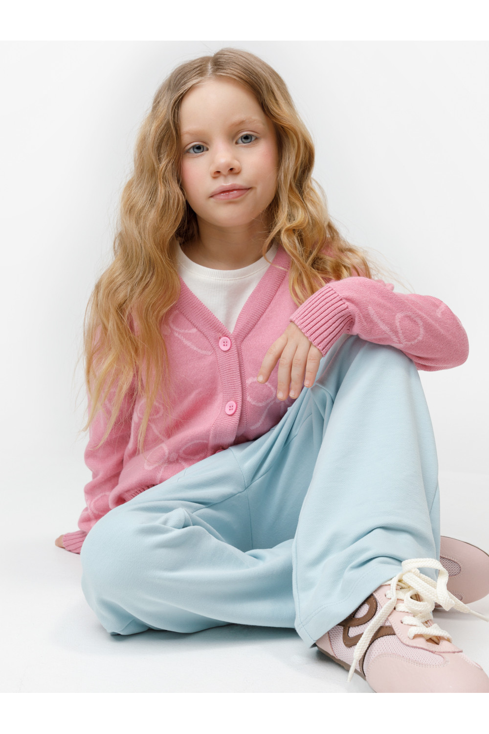 Брюки из мягкого петельчатого футера для девочки. Модель с эластичным поясом на резинке и регулировкой по талии с помощью шнурка. Изделие сохраняет цвет и форму после многократных стирок. Все трикотажные полотна производятся в соответствии с нормами швейцарского сертификата ЭкоТекс.