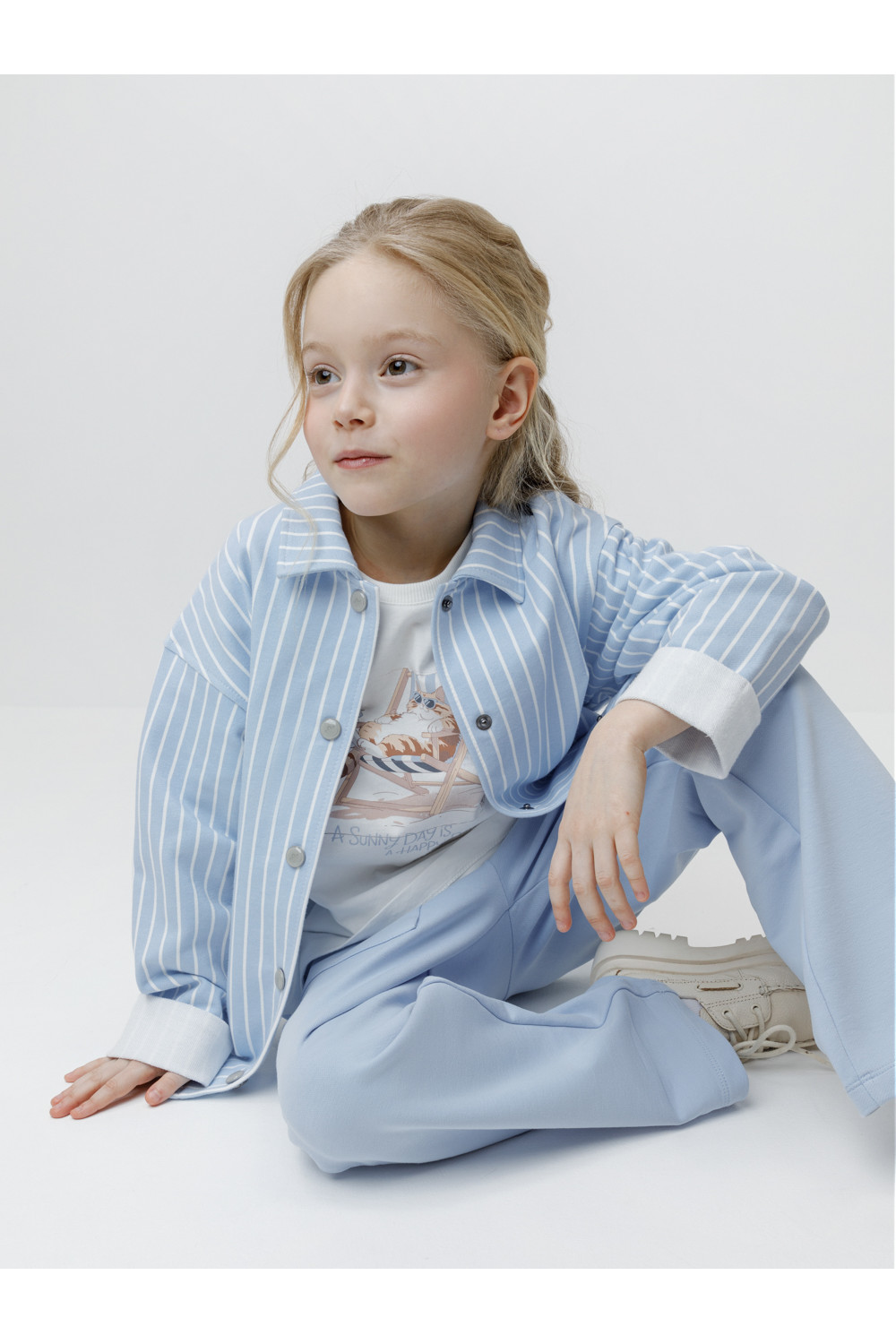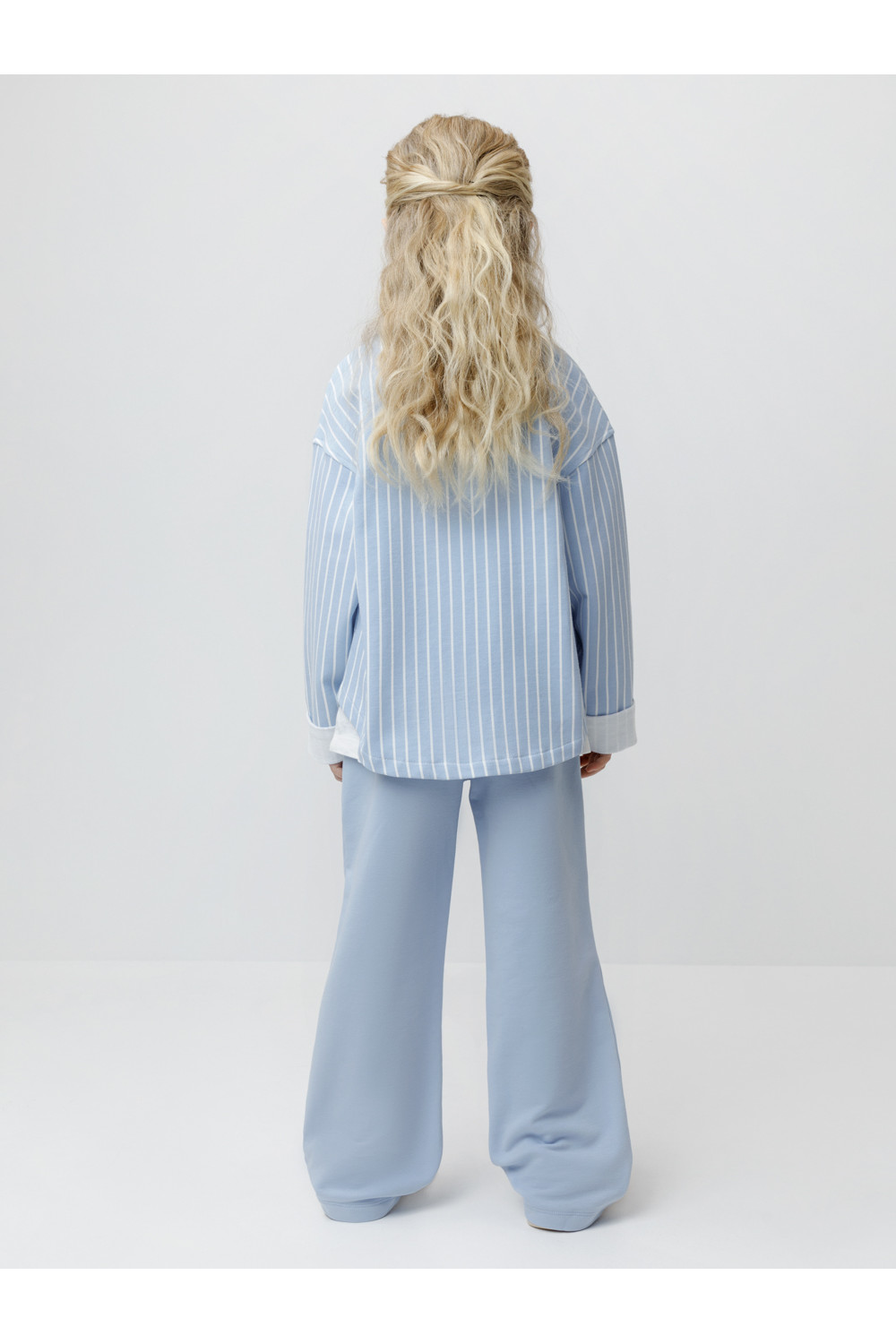 Брюки из мягкого петельчатого футера для девочки. Модель с эластичным поясом на резинке и регулировкой по талии с помощью шнурка. Изделие сохраняет цвет и форму после многократных стирок. Все трикотажные полотна производятся в соответствии с нормами швейцарского сертификата ЭкоТекс.