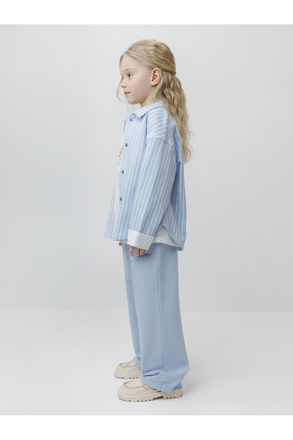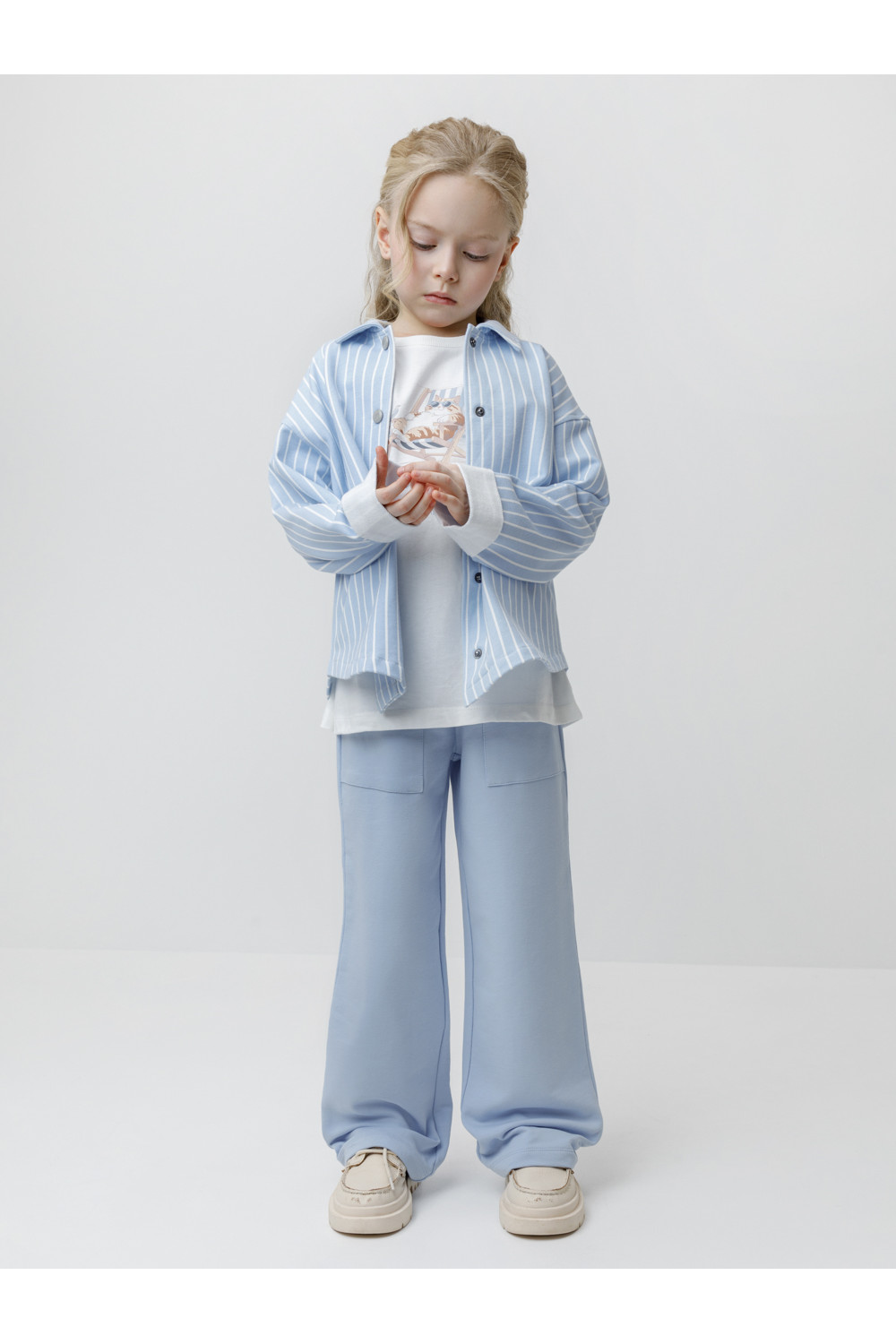 Брюки из мягкого петельчатого футера для девочки. Модель с эластичным поясом на резинке и регулировкой по талии с помощью шнурка. Изделие сохраняет цвет и форму после многократных стирок. Все трикотажные полотна производятся в соответствии с нормами швейцарского сертификата ЭкоТекс.