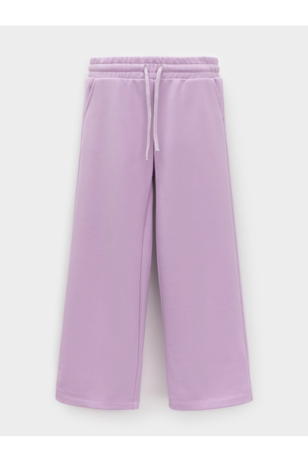 Брюки для девочки из мягкого однотонного футера. В составе 80% натурального хлопка и 20% полиэстера, при этом полиэстер ввязан внутрь по особой технологии и не соприкасается с кожей. Модель с эластичным поясом на резинке и регулировкой по талии с помощью шнурка. Изделие сохраняет цвет и форму после многократных стирок. Все трикотажные полотна производятся в соответствии с нормами швейцарского сертификата ЭкоТекс.