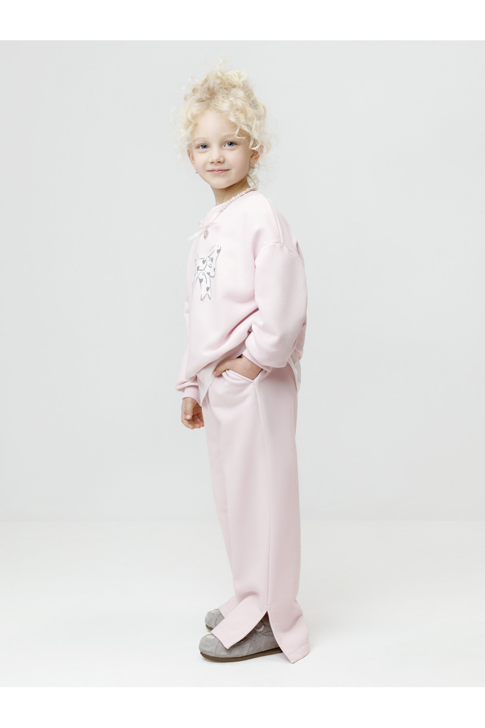 Брюки для девочки из мягкого однотонного футера. В составе 80% натурального хлопка и 20% полиэстера, при этом полиэстер ввязан внутрь по особой технологии и не соприкасается с кожей. Модель с эластичным поясом на резинке и регулировкой по талии с помощью шнурка. Изделие сохраняет цвет и форму после многократных стирок. Все трикотажные полотна производятся в соответствии с нормами швейцарского сертификата ЭкоТекс.