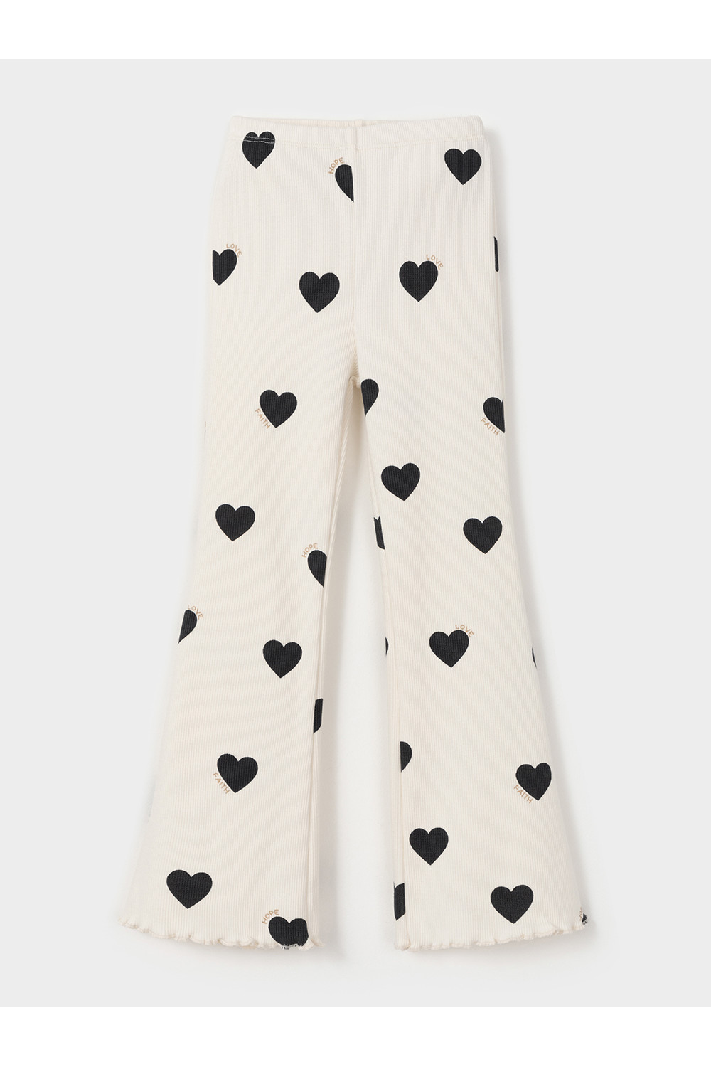 Брюки для девочки из эластичного трикотажа в рубчик. Пояс на резинке. Изделие сохраняет цвет и форму после многократных стирок. Все трикотажные полотна производятся в соответствии с нормами швейцарского сертификата ЭкоТекс.