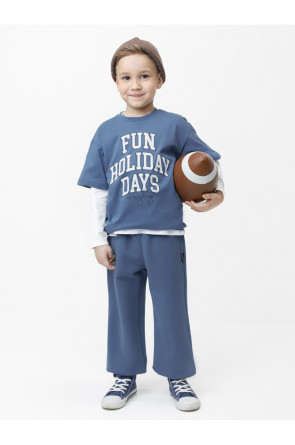 Брюки для мальчика из мягкого петельчатого трикотажа. В составе 80% натурального хлопка и 20% полиэстера, при этом полиэстер ввязан внутрь по особой технологии и не соприкасается с кожей. Модель с эластичным поясом на резинке и регулировкой по талии с помощью шнурка. Низ на манжетах. Изделие сохраняет цвет и форму после многократных стирок. Все трикотажные полотна производятся в соответствии с нормами швейцарского сертификата ЭкоТекс.