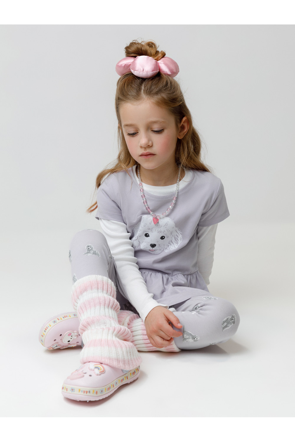 Трикотажные лосины для девочки из гладкого эластичного полотна. Оригинальный рисунок выполнен из стойких текстильных гипоаллергенных красителей. Изделие сохраняет цвет и форму после многократных стирок. Все трикотажные полотна производятся в соответствии с нормами швейцарского сертификата ЭкоТекс.