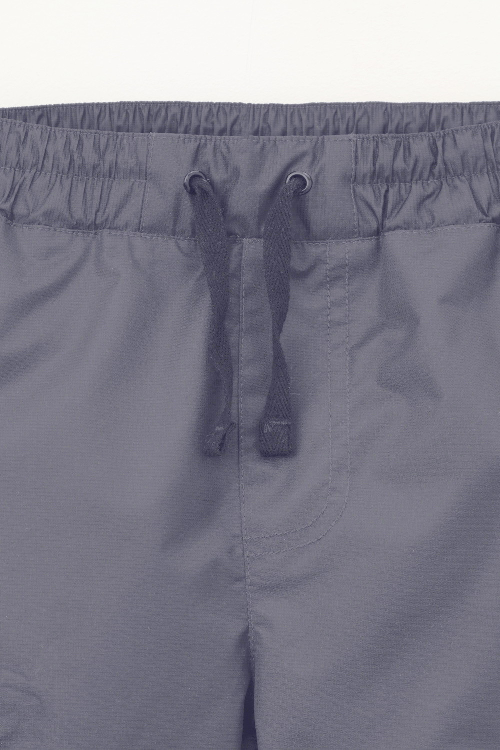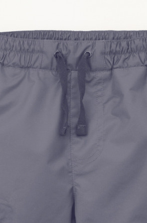 Ветровочные брюки из мембранной ткани с дополнительной тефлоновой обработкой. Данный вид обработки предохраняет изделие от загрязнения и лучше отводит влагу. Подклад из 100% хлопка. Эластичный пояс утягивается при помощи шнурка. Ширина низа регулируется утяжкой со стопперами. Во всех изделиях верхнего ассортимента для безопасности ребенка предусмотрены светоотражающие элементы.