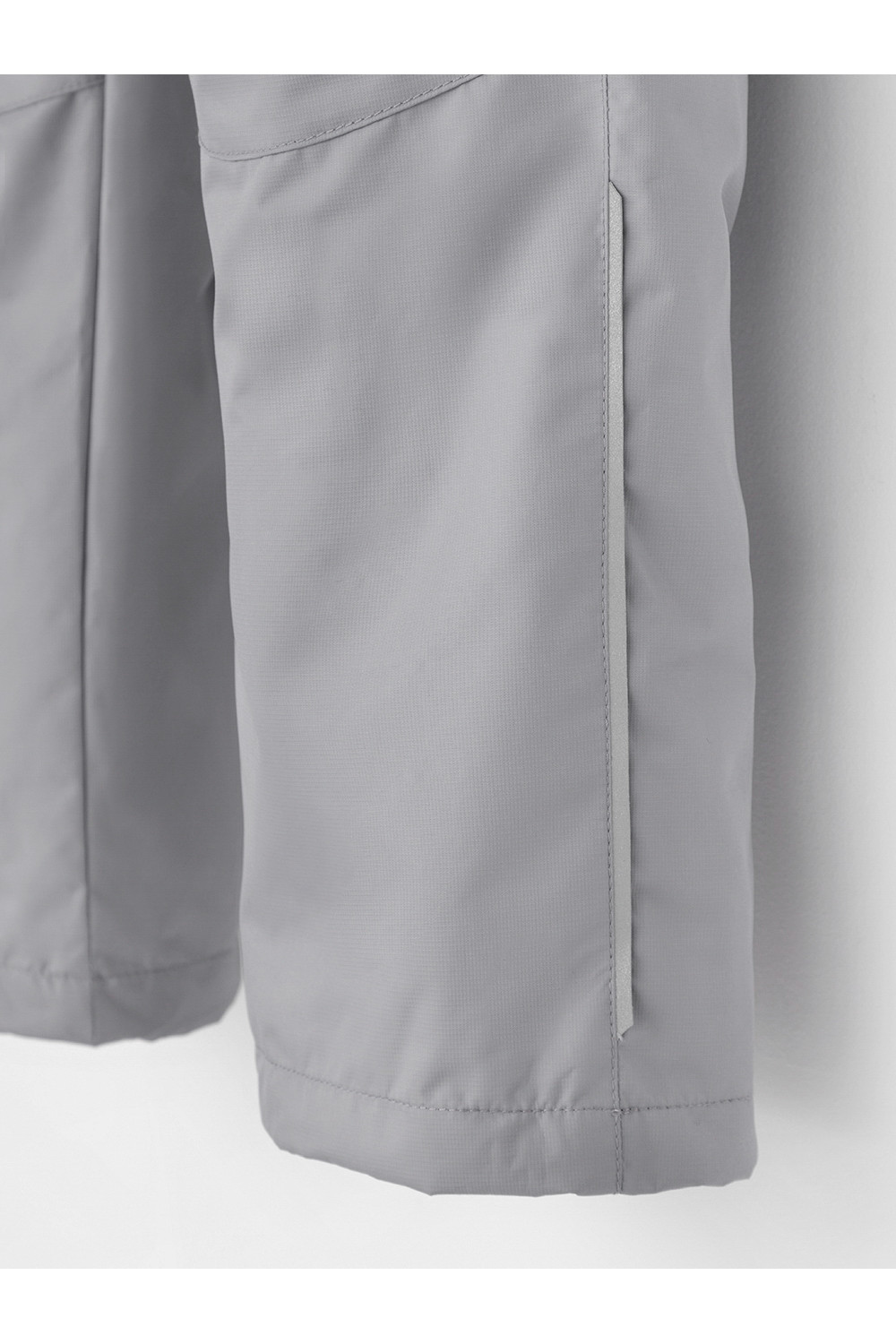 Ветровочные брюки из мембранной ткани с дополнительной тефлоновой обработкой. Данный вид обработки предохраняет изделие от загрязнения и лучше отводит влагу. Подклад из 100% хлопка. Эластичный пояс утягивается при помощи шнурка. Ширина низа регулируется утяжкой со стопперами. Во всех изделиях верхнего ассортимента для безопасности ребенка предусмотрены светоотражающие элементы.