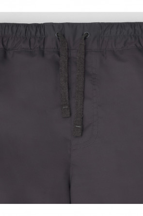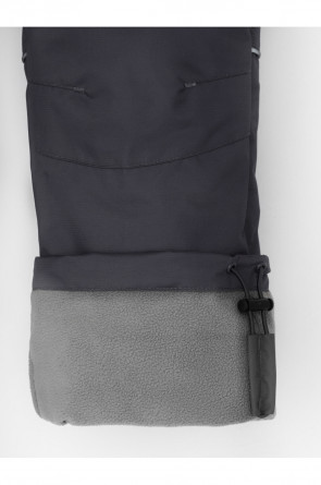 Ветровочные брюки из мембранной ткани с дополнительной тефлоновой обработкой. Данный вид обработки предохраняет изделие от загрязнения и лучше отводит влагу. Подклад из флиса, 100% полиэстер. Эластичный пояс утягивается при помощи шнурка. Ширина низа регулируется утяжкой со стопперами. Во всех изделиях верхнего ассортимента для безопасности ребенка предусмотрены светоотражающие элементы.