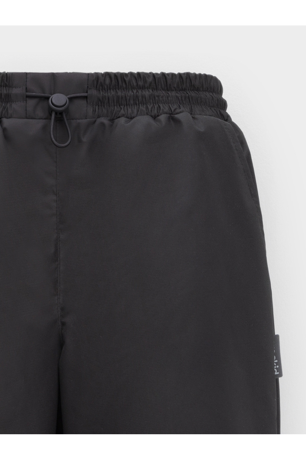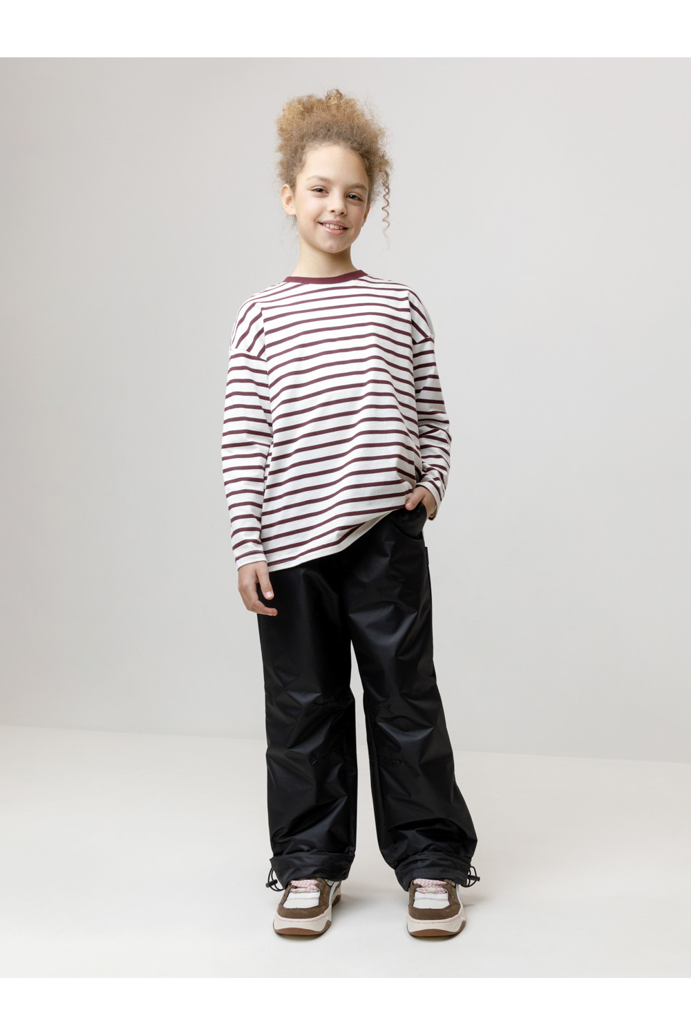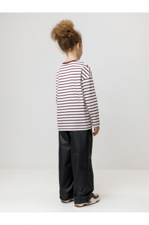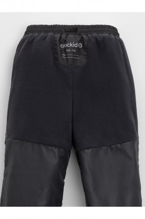 Ветровочные брюки из мембранной ткани с дополнительной тефлоновой обработкой. Данный вид обработки предохраняет изделие от загрязнения и лучше отводит влагу. Подклад из хлопка в размере 80-86 и из флиса с полиэстером в размерах от 86-92 до 116-122. Эластичный пояс регулируется по ширине при помощи шнурка со стоппером. Длина брюк регулируется при помощи липучек. Во всех изделиях верхнего ассортимента для безопасности ребёнка предусмотрены светоотражающие элементы.