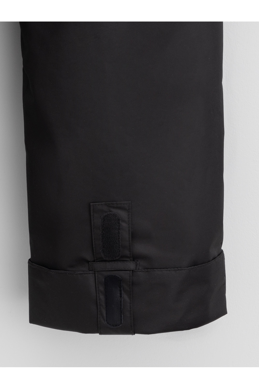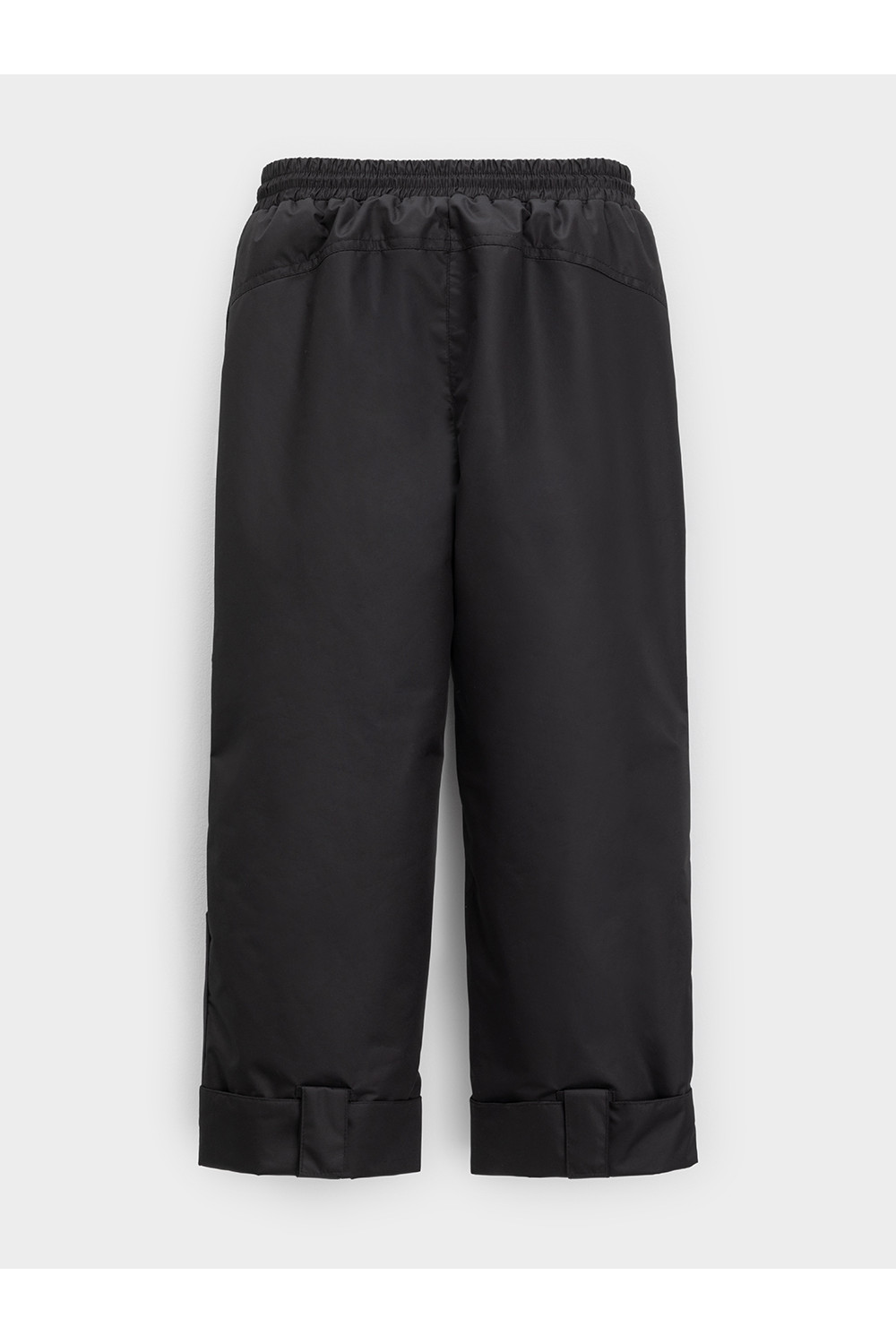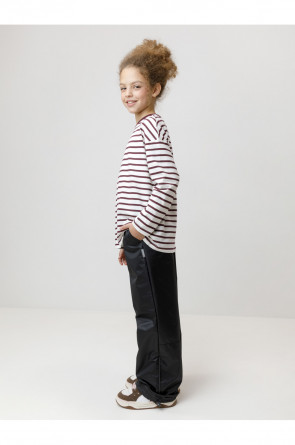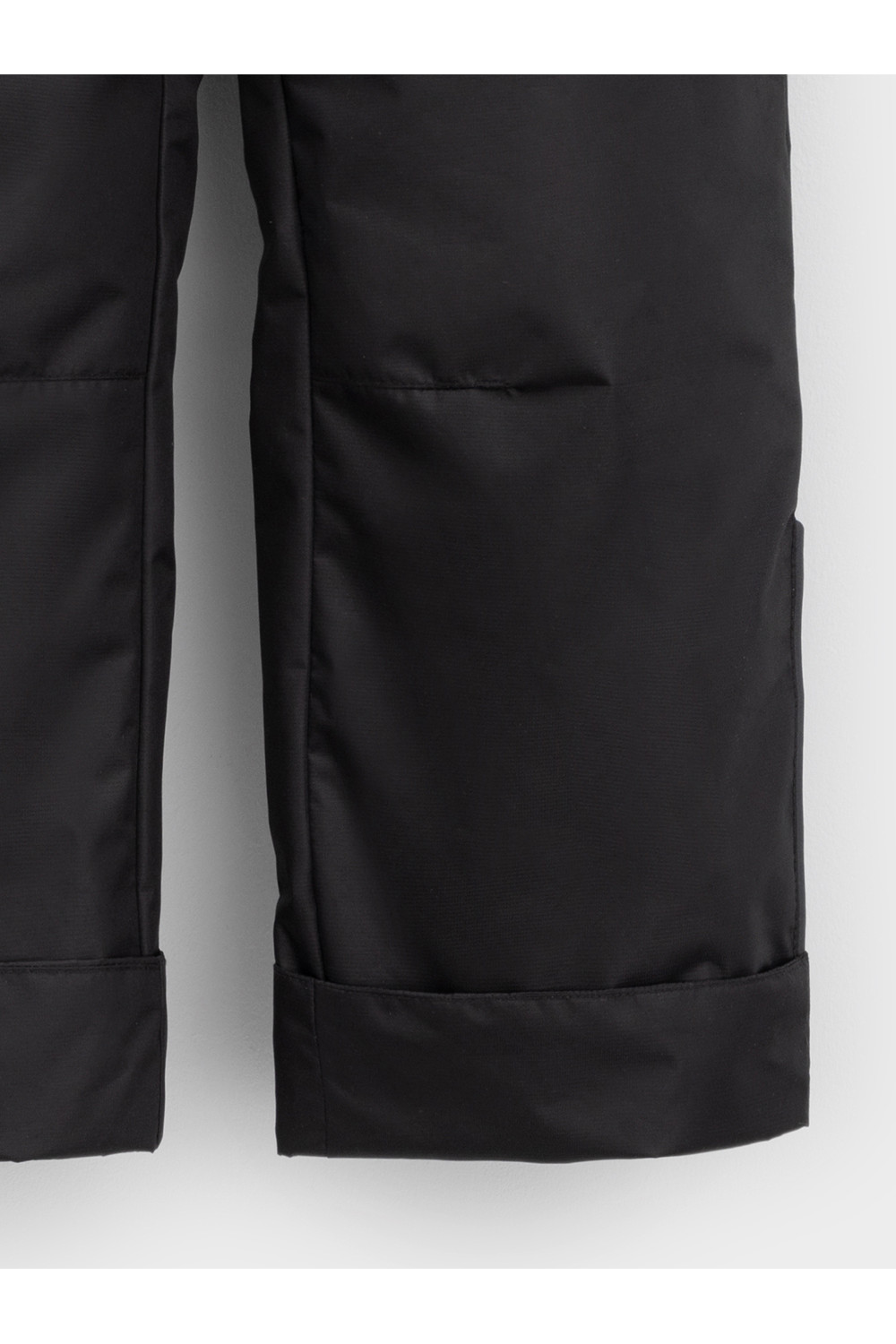 Ветровочные брюки из мембранной ткани с дополнительной тефлоновой обработкой. Данный вид обработки предохраняет изделие от загрязнения и лучше отводит влагу. Подклад из хлопка в размере 80-86 и из флиса с полиэстером в размерах от 86-92 до 116-122. Эластичный пояс регулируется по ширине при помощи шнурка со стоппером. Длина брюк регулируется при помощи липучек. Во всех изделиях верхнего ассортимента для безопасности ребёнка предусмотрены светоотражающие элементы.